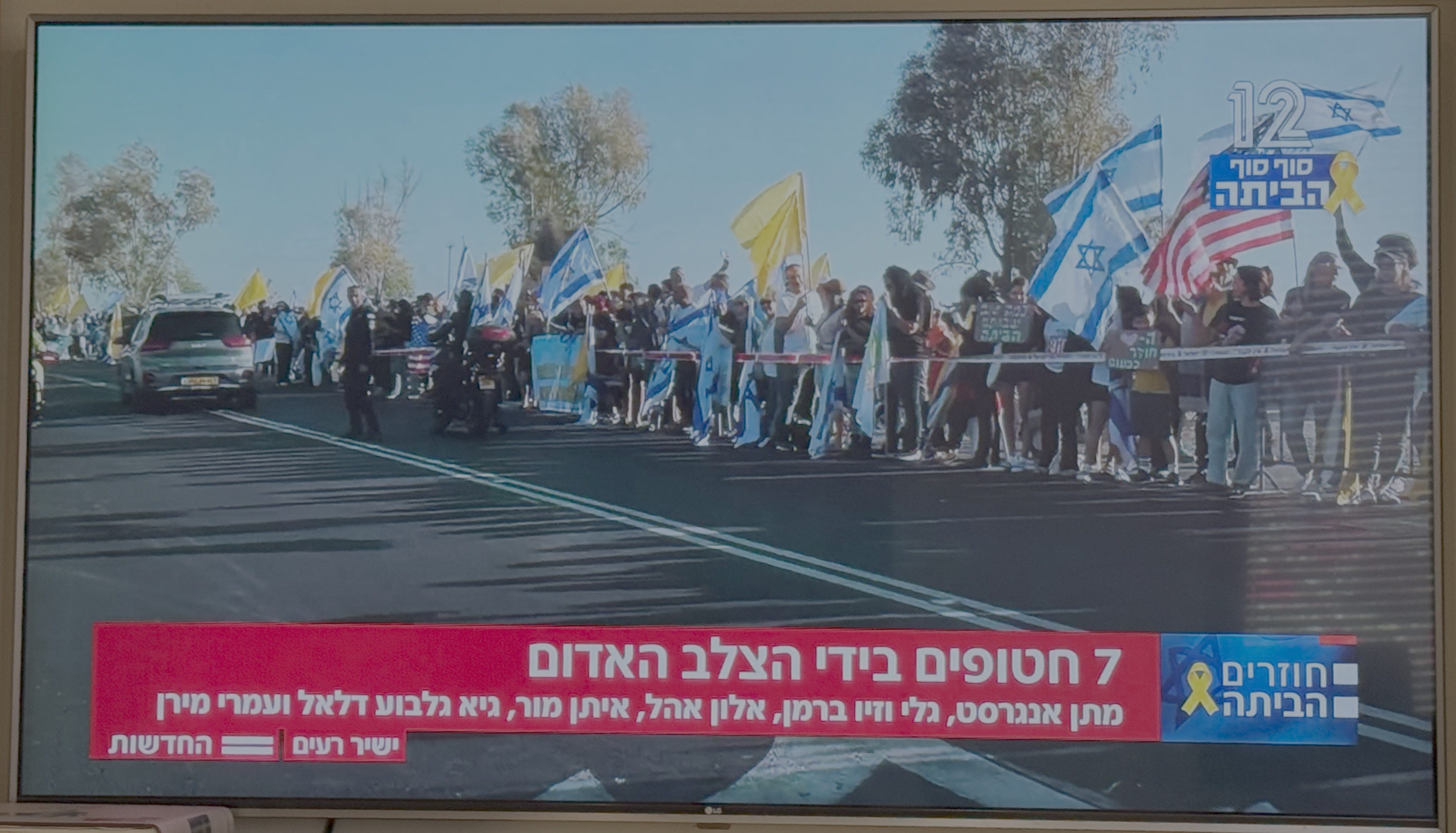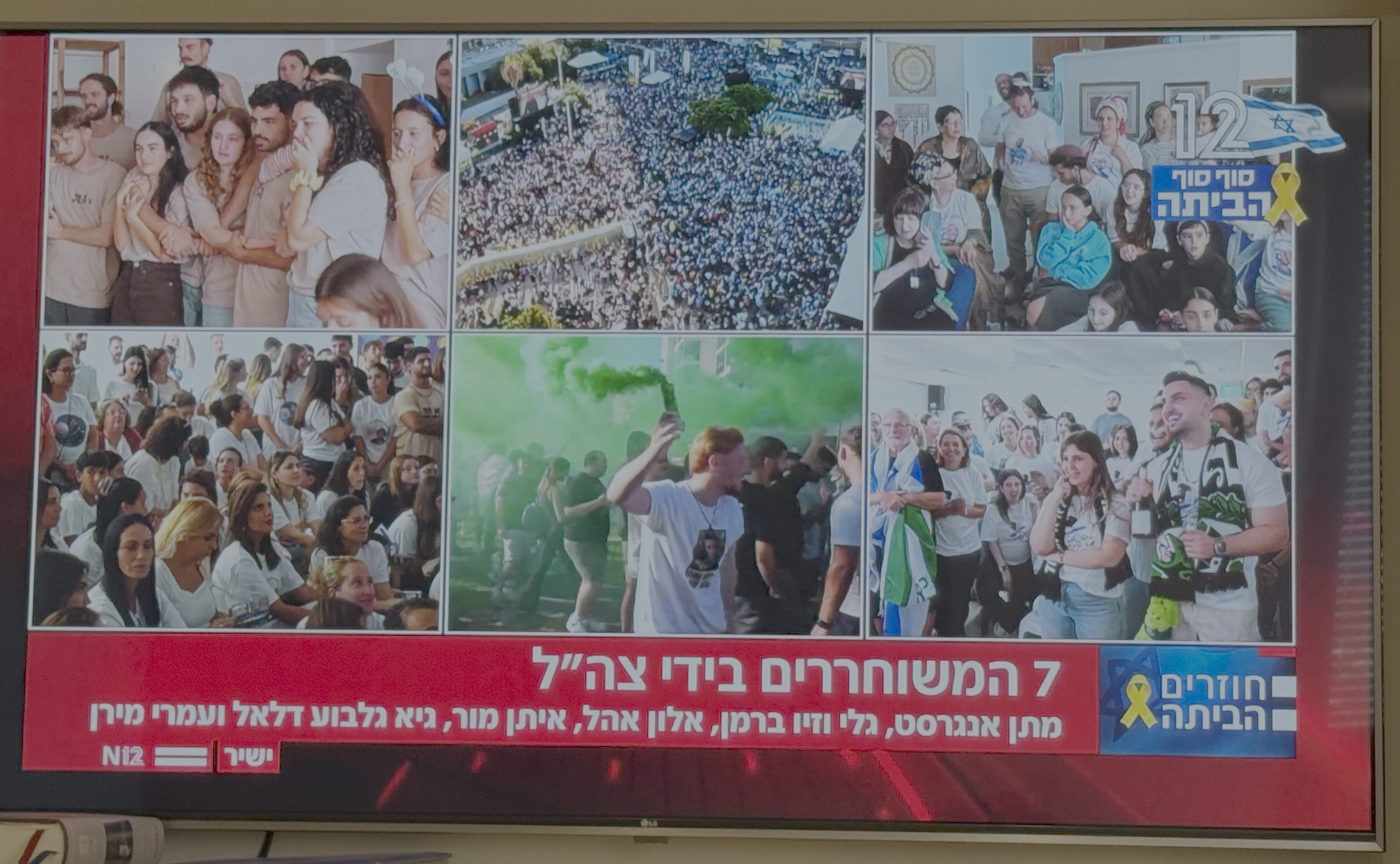 Gatherings in the home of the hostages, a massive rally at Hostage Square. When I turned on the TV at 3:00 a.m., there were already hundreds of them there … some hours later, estimates were of close to 100,000 people who wanted to witness the events on giant screens at the place that became synonymous with the public’s drive to get the hostages home.