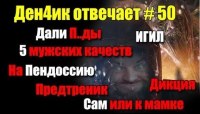 3:28 - Отношение к западу 12:31 - Исправление сутулость после 25 15:36 - Исправление дикции, речевое развитие 22:17 - Топ 5 настоящего мужчины 28:56 - Почему мечта сбывается когда ты её забываешь? 33:34 - Сюжет на тему тренировки по Армрестлингу 35:11 - Покажет ли Ден4ик свою семью 37:01 - Живя с девушкой становлюсь пассивным 41:12 - Образ жизни не передаётся потомкам? 43:42 - Какую выбрать идею если их много 48:41 - Восстановить руки после травмы 51:51 - Денис ты бросаешь комрадов? 58:33 - Чем загружается Денис 1:02:09 - Сюжеты про экономику 1:03:53 - Почему у мужчин дефекты речи встречаются чаще, чем у женщин 1:07:51 - Помолвка Дениса 1:08:25 - Как формируется темперамент 1:12:07 - Исламское государство 1:16:11 - Высокоповторная тренировка 1:18:52 - Какие знаешь языки программирования 1:22:13 - В качестве предтреника Ред булл 1:23:42 - Почему мужчина не хочет больше совокупляться после окончания полового акта 1:25:26 - Что ты знаешь о ваномасе 1:27:17 - Треш история 1:38:06 - Девочка подала знак внимания, а ответа не дал 1:40:13 - Сделать спортпит дешевым 1:42:13 - Избирательный в плане девочек 1:43:53 - Отношение общества к длинным волосам 1:45:26 - Качаю пресс боль в пояснице 1:47:21 - Уменьшается ли сердце в объеме если перестаешь тренироваться 1:47:56 - Отношение к комрадов которые тренируют людей испытав твою мудрость 1:48:30 - Подарок Денчику 1:50:13 - Если смысл закладывать правильный фундамент на тренировках 1:51:11 - Новые виды деятельности которые еще не популярны 1:51:46 - Книга физиология пищеварения 1:52:56 - Щелкает в плечевом суставе 1:53:18 - Пришла СМС 1:55:29 - Могу ли в 35 врать что мне 25? 1:57:52 - Молодые самцы скалят зубы 2:03:12 - Как развить красноречие 2:04:54 - Плохо и хорошо с девушкой что делать 2:06:20 - Остаться или к маме |