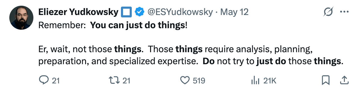 https://www.lesswrong.com/posts/oQ3STP9oLafJqiJdD/against-you-can-just-do-things