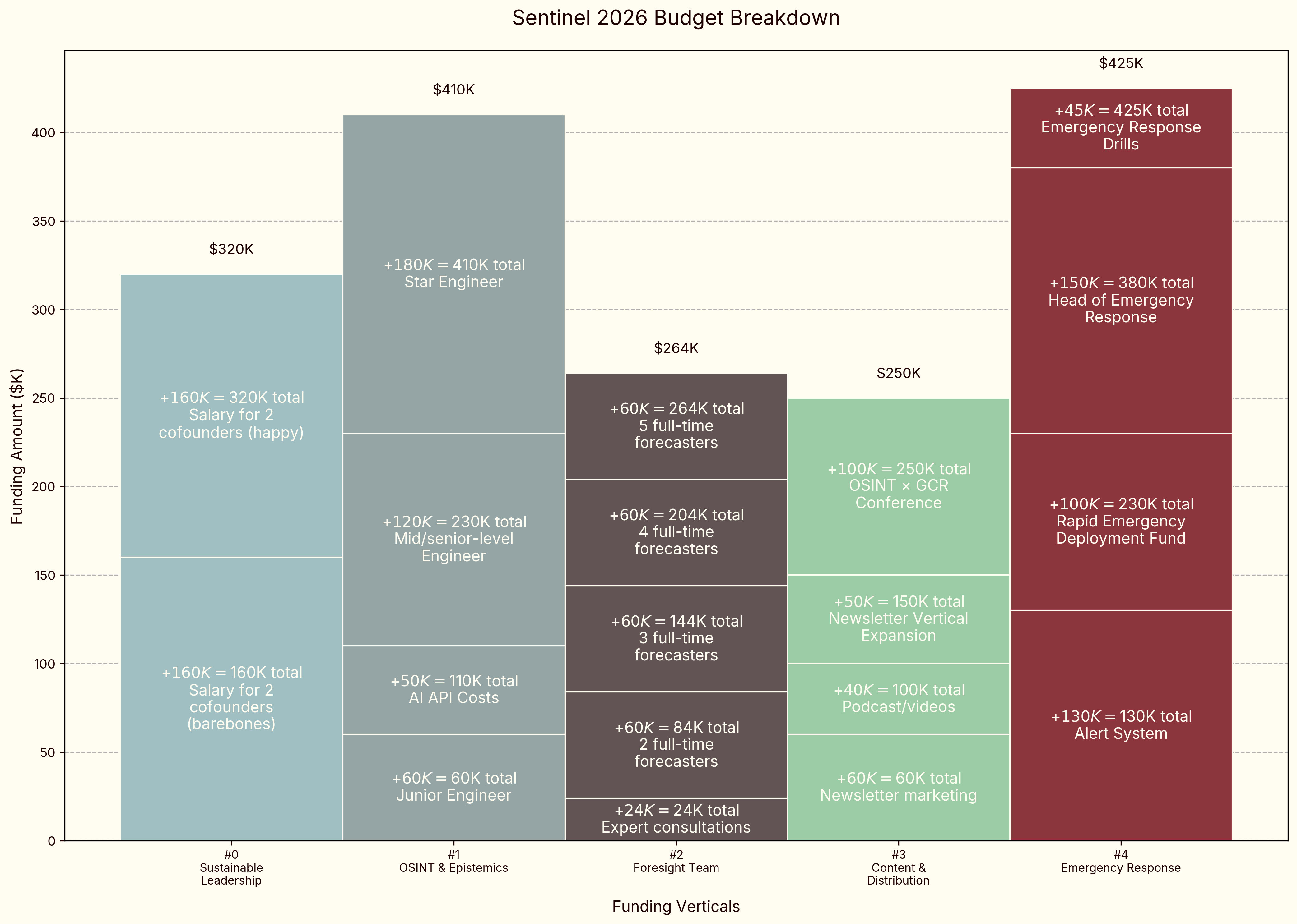 tl;dr: Sentinel is an open-source intelligence organization that rapidly identifies and reacts to global risks, particularly ones difficult to anticipate over longer time-horizons. We have filled $700K of our ~$1.6M budget and are looking to fill the rest to expand and sustain our large-scale open source monitoring for GCR.