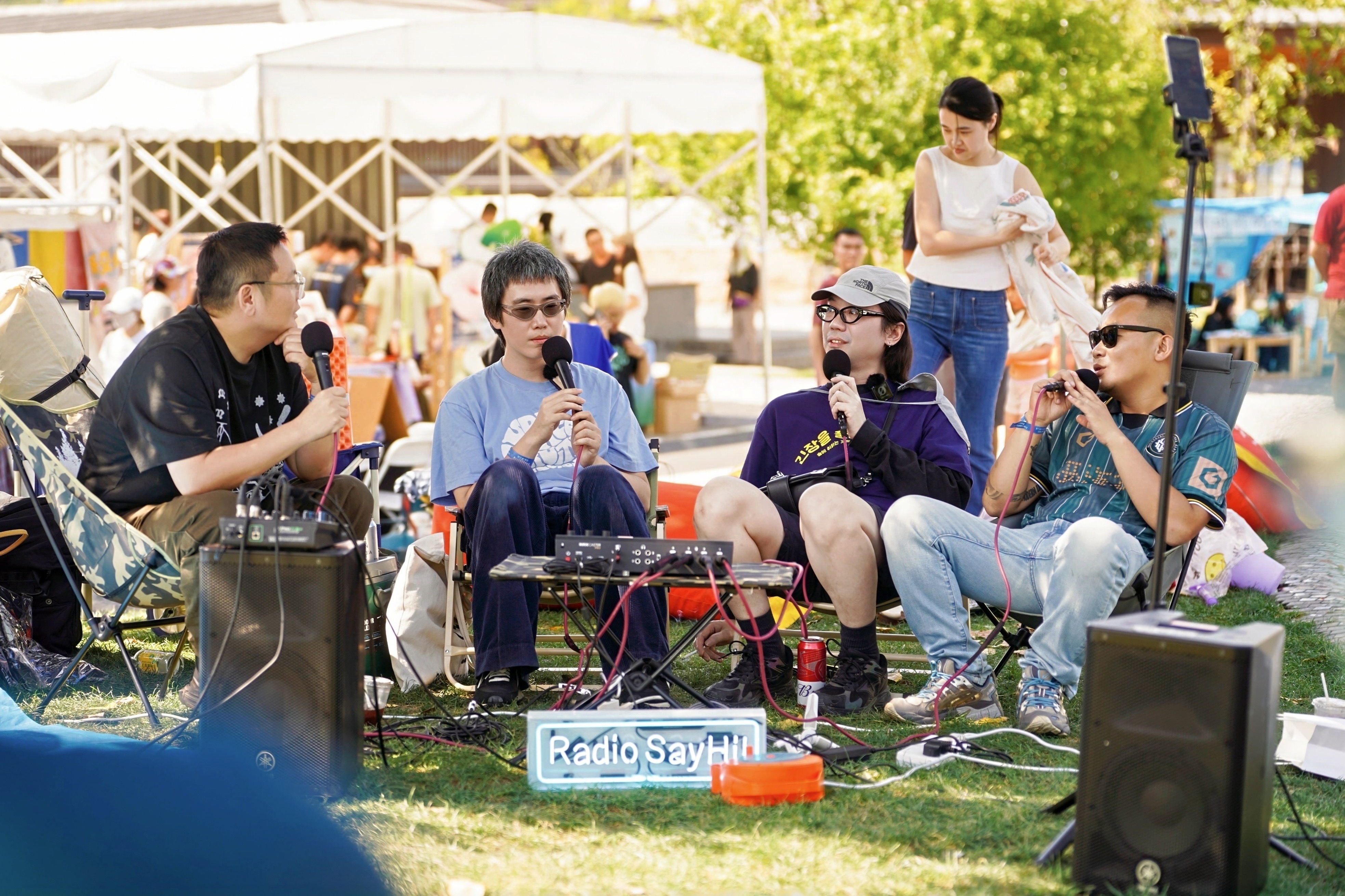 当天的阳光洒满草坪,abC 市集热热闹闹,孩子们在旁边一米处相互泼水,险些泼到未做任何防水设置的录音与扩音设备以及电源上。不禁让人思考,如果是我,打算为此情此景配上什么样的音乐?