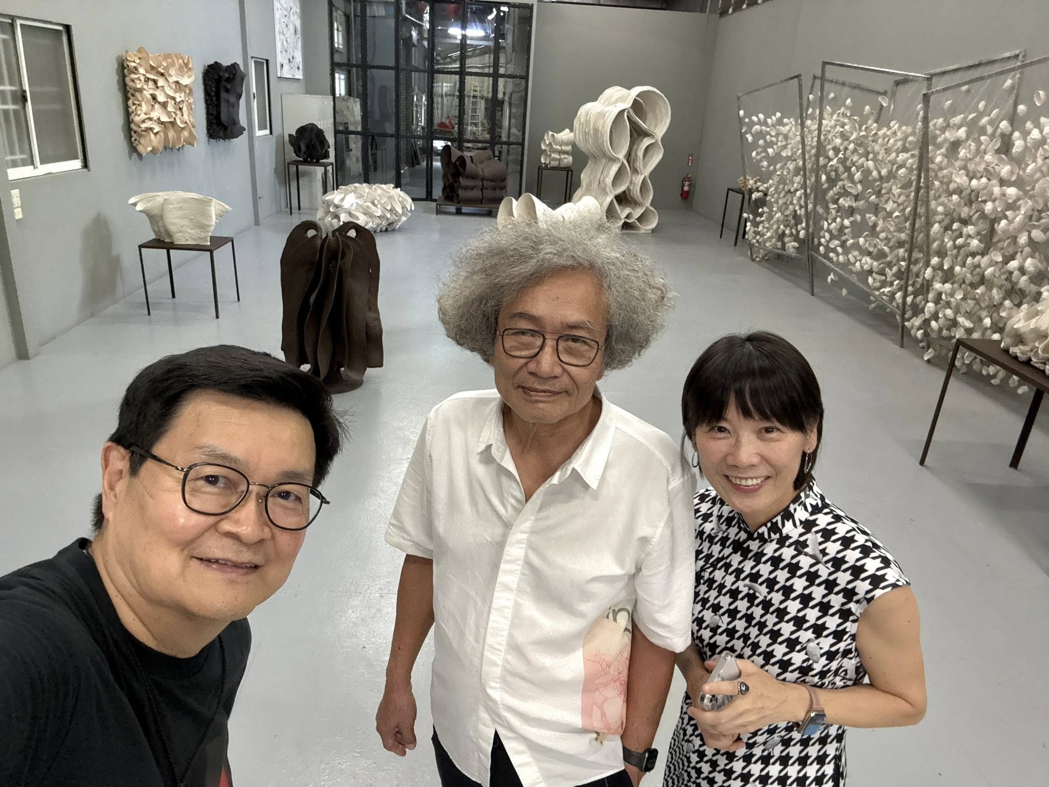 開畫廊的邀請,來自建商提供的老房子,後來更標下台南古蹟「偕行社」的標案。在古蹟空間裡辦展,處處是限制,卻也處處是禮物。弎畫廊在偕行社的開幕首展,邀請雕塑家徐永旭,以世界巡迴展的重要一站揭幕。這位與陶土相伴的藝術家,作品既有勞動的厚度,也有音樂般的節奏。展名〈潤潤〉出自女兒、抽象藝術家徐嘒壎之手:既是作品與身體汗水的水分,也像推石頭的西西弗斯,汗滴落地滋養土地;在台語裡,「潤」又諧音「韌」,象徵父親、畫廊與古蹟一路走來的堅韌不放棄。