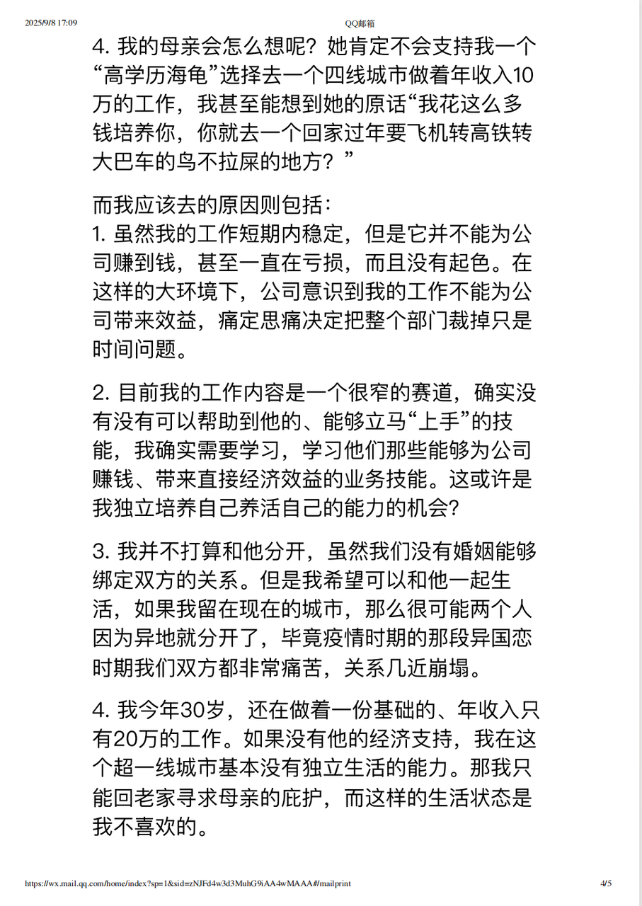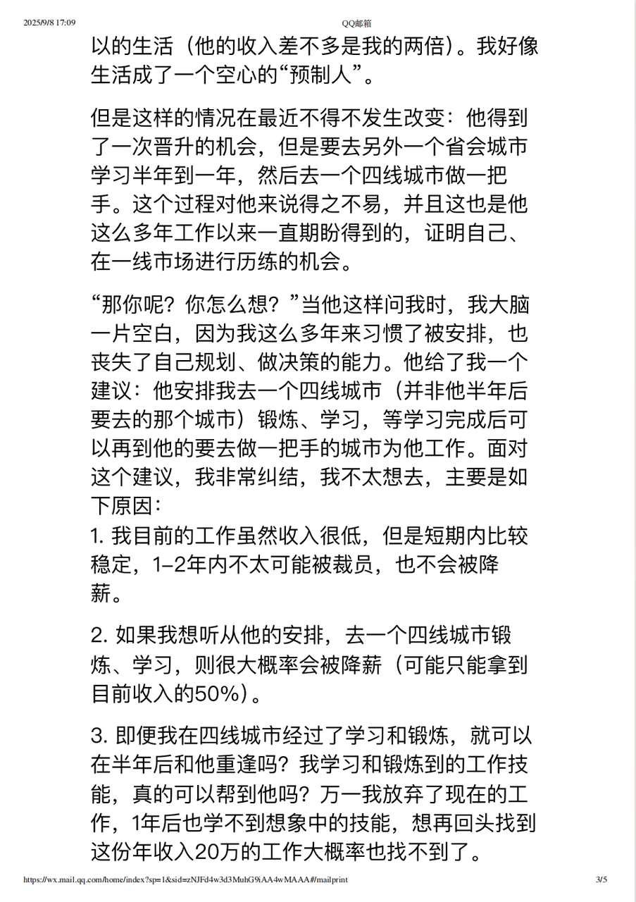 【十月回信】伴侣晋升换城市,需要我降薪陪他去新城市,我陷入了选择困难