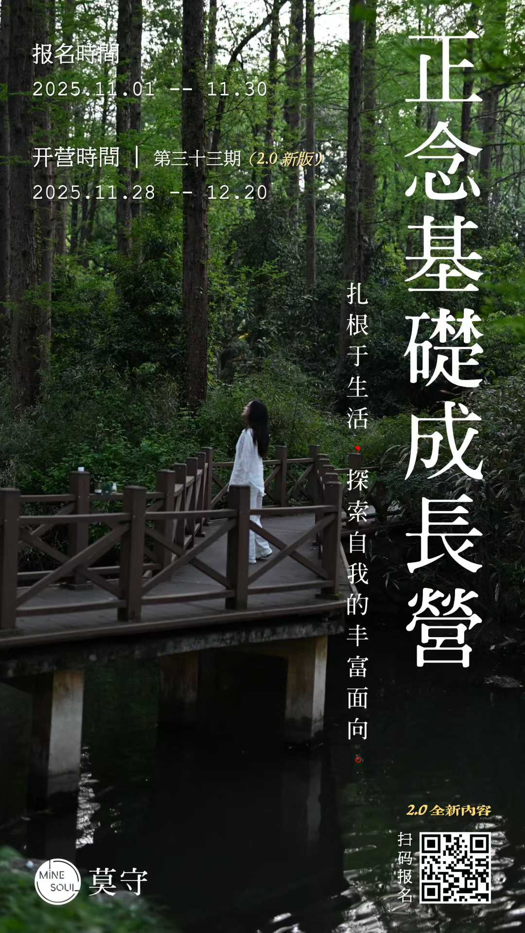 11月28日正念基础第33期开营,欢迎大家跟我们一起在2025年的结尾给自己一个照顾身心的机会,相信你会有意想不到的收获。