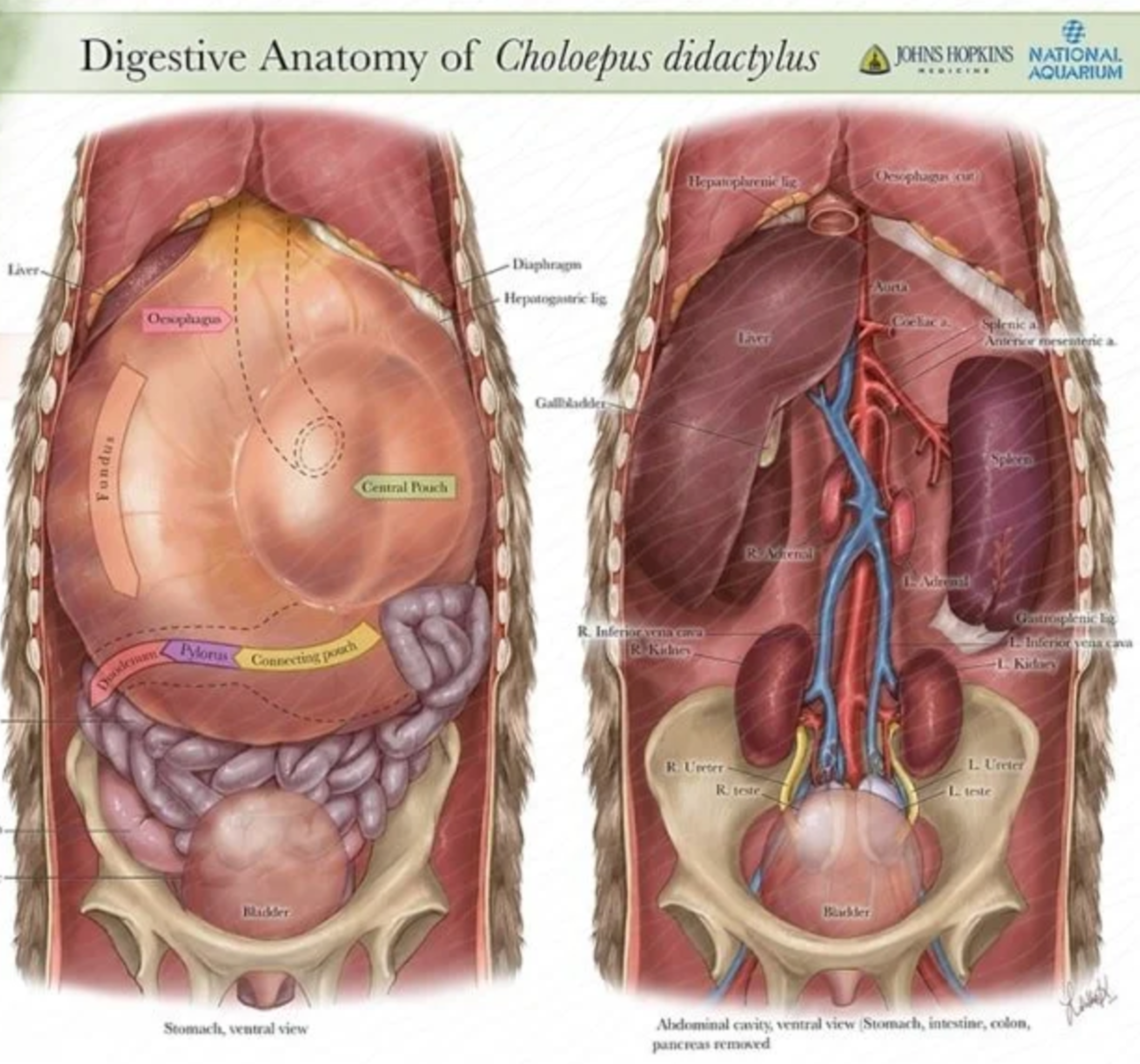 树懒腹部的内脏结构: