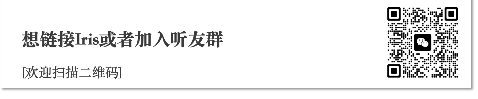 以上就是这一期的播客,欢迎大家添加iris的微信iriswang042或者CK的微信48868159
