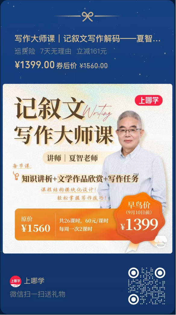 另外,大家一直在呼吁的作文课终于来了。我们和夏老师联合推出了写作大师课,适合5-7年级的孩子,有意向的友友可以直接下滑shownotes。