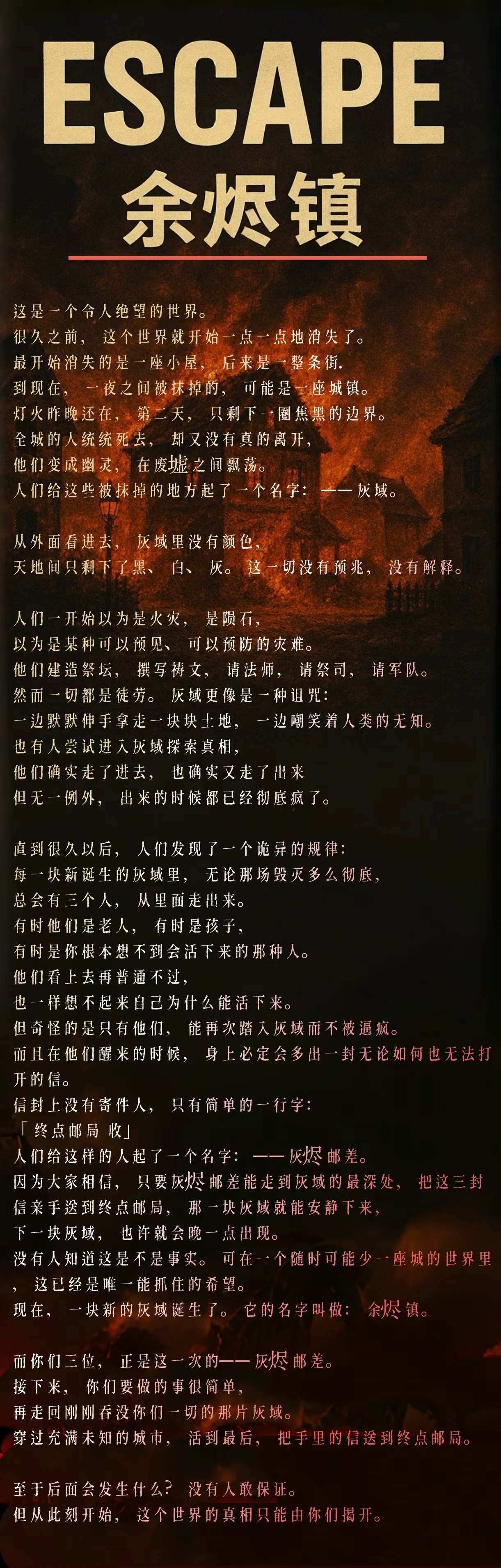 原创逃生游戏:灰烬邮差|和异地登录一起逃生啦