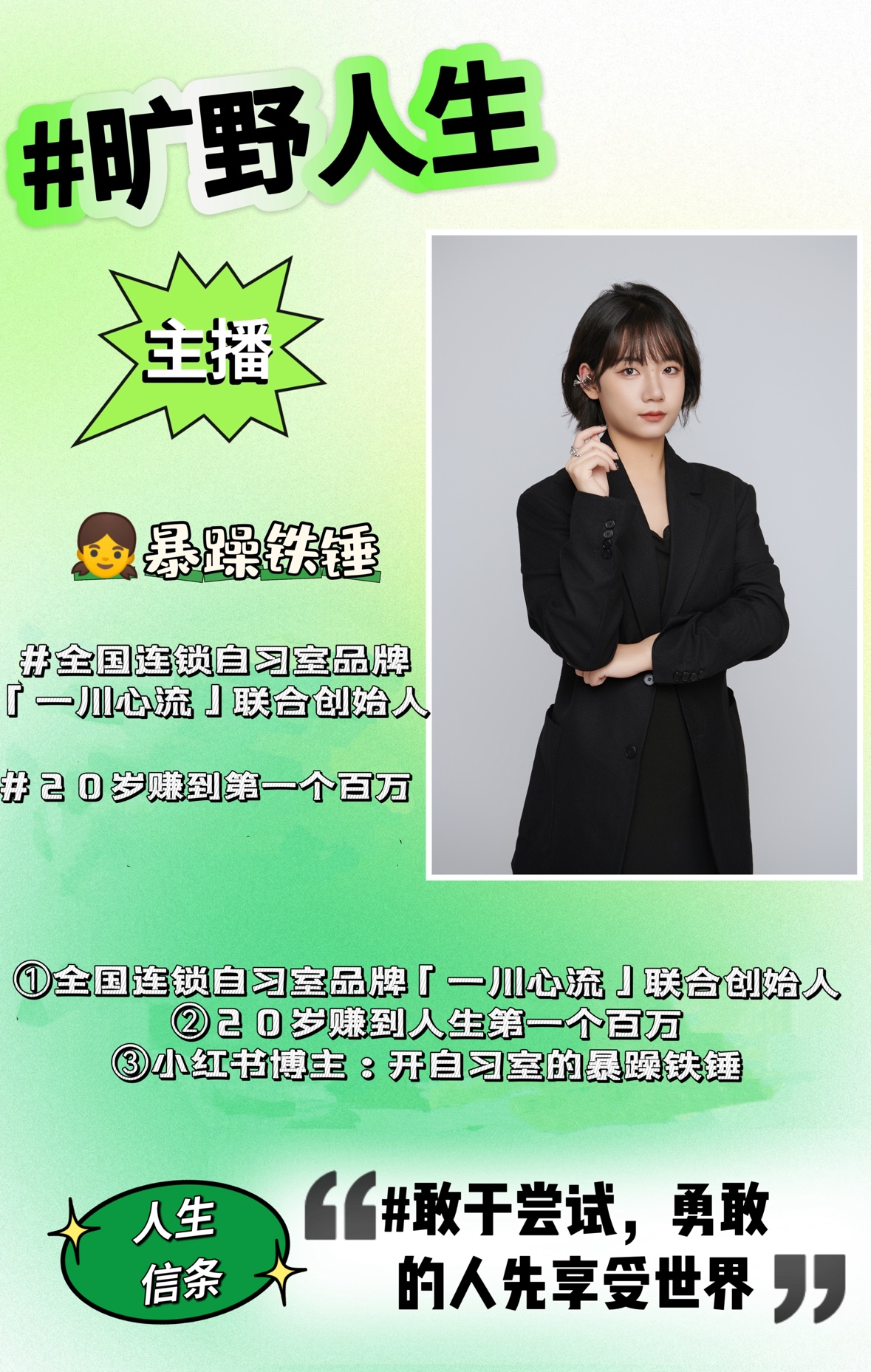 ①全国连锁自习室品牌“一川心流”联合创始人
