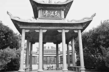 劫波亭,亭后石碑为义乌细菌战死亡者名单,这份1315人的死亡名单是在细菌战诉讼推动下,义乌原告和受害者逐村逐户调查出来的。南香红 摄
