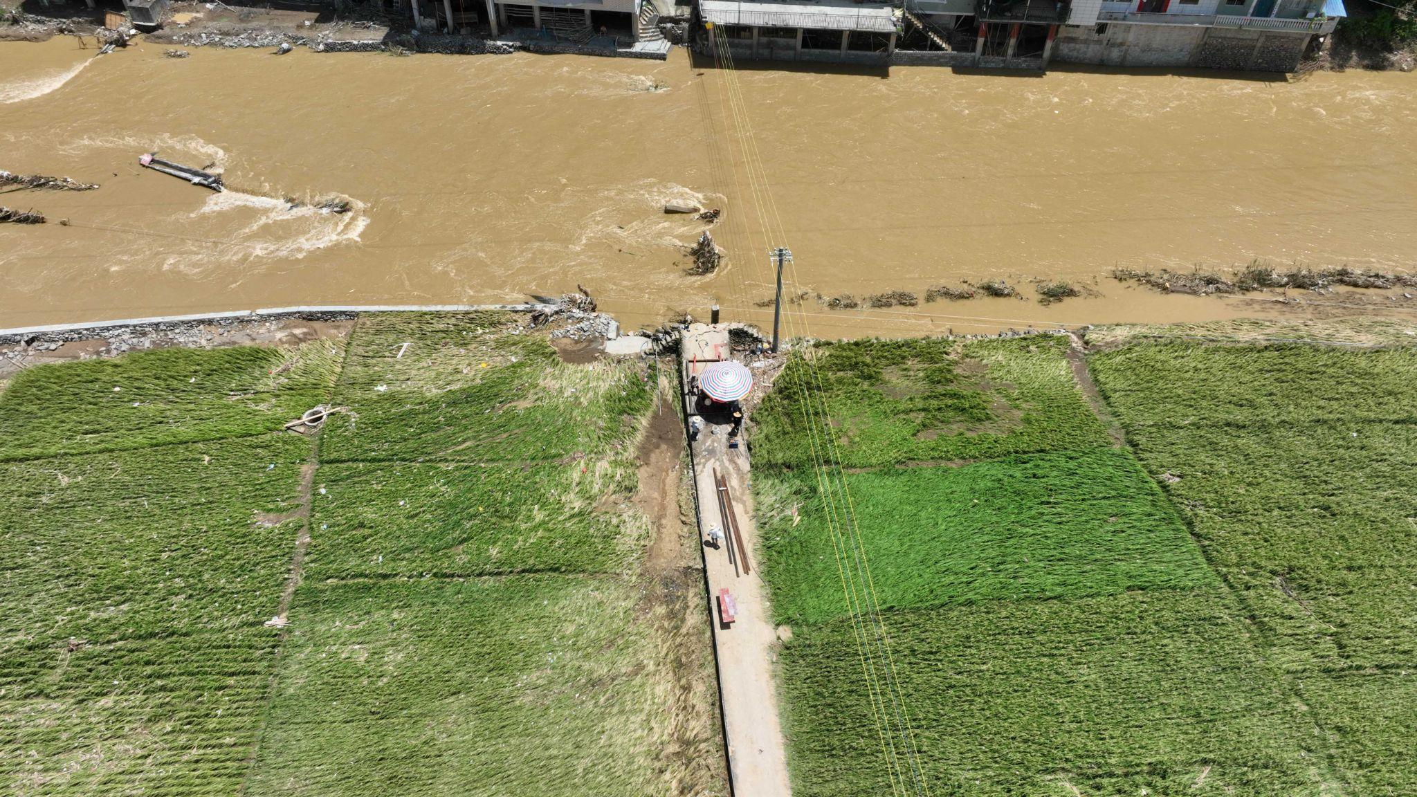 2025年7月3日,广西隆林县,一个村庄的桥梁被完全冲垮,这是进村的唯一道路。©️ Zou Biyu / Greenpeace