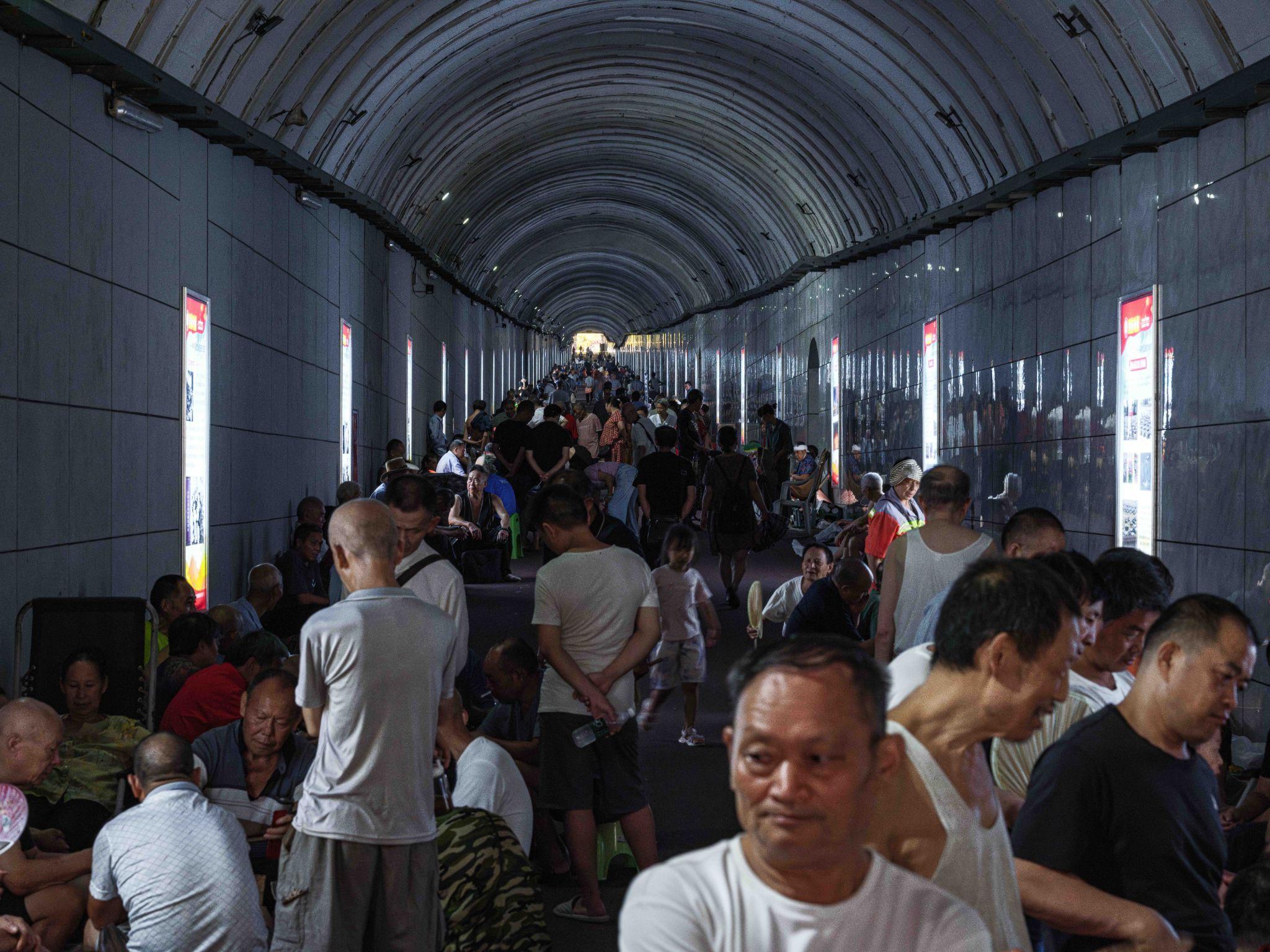 2024年8月,内江市防空洞内躲避酷暑的人群。©️ Zou Biyu / Greenpeace