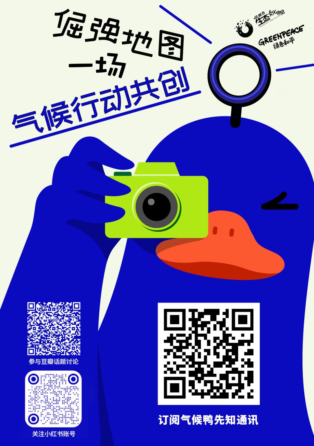 本期播客,受到绿色和平【倔强地图】气候行动展览的启发。对气候变化议题感兴趣、并有兴趣参与气候变化主题创作的朋友们,可以订阅绿色和平【鸭先知】邮件推送,或者在小红书以及豆瓣参与话题讨论。详情请扫下图二维码。