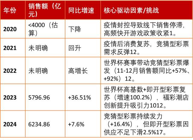 彩票行业与多数消费领域不同,在经济增长放缓期仍保持增长,例如2024年即开型彩票虽受供应限制影响(如刮刮乐缺货),但整体销售额仍达1160.57亿元
