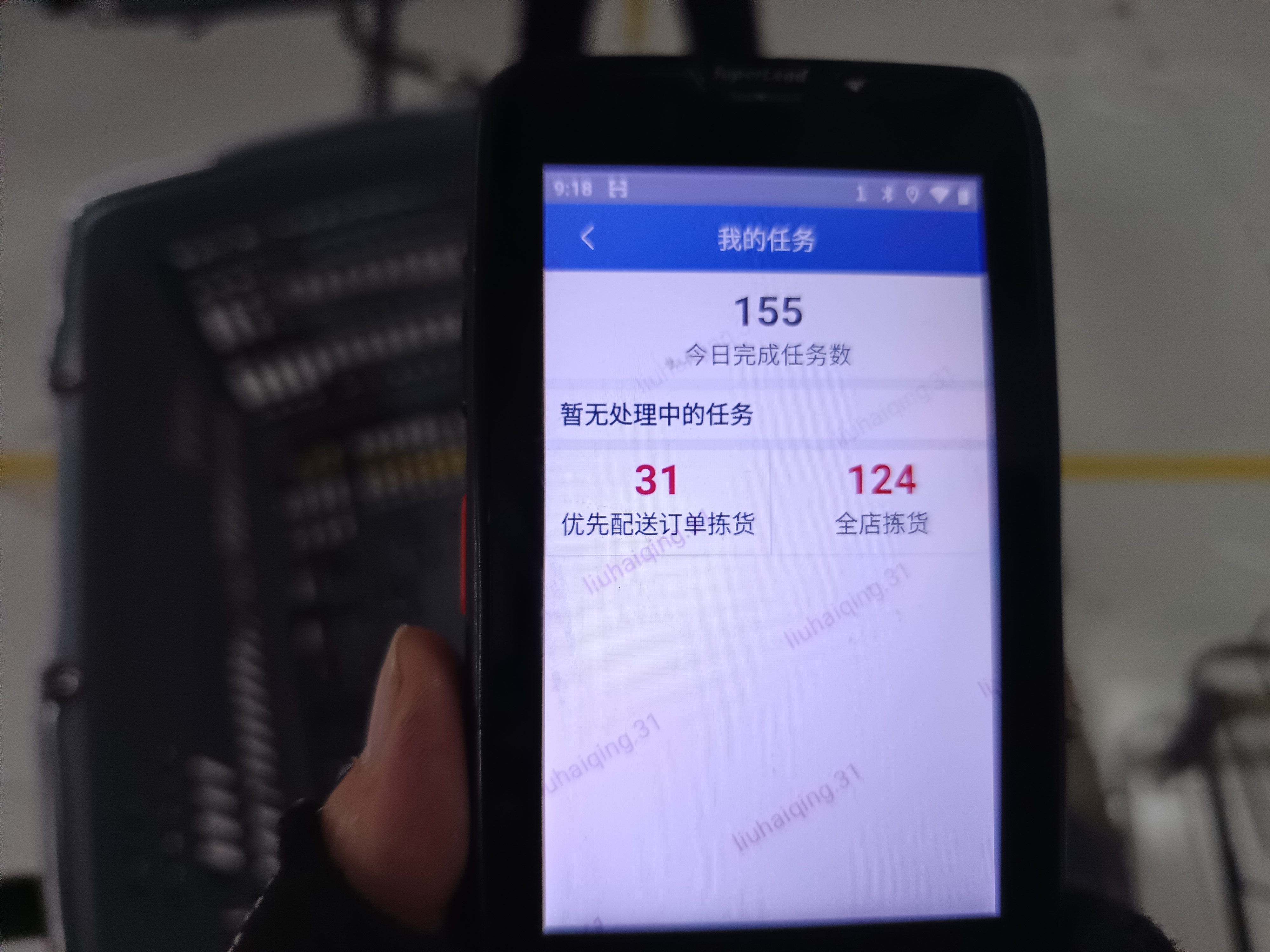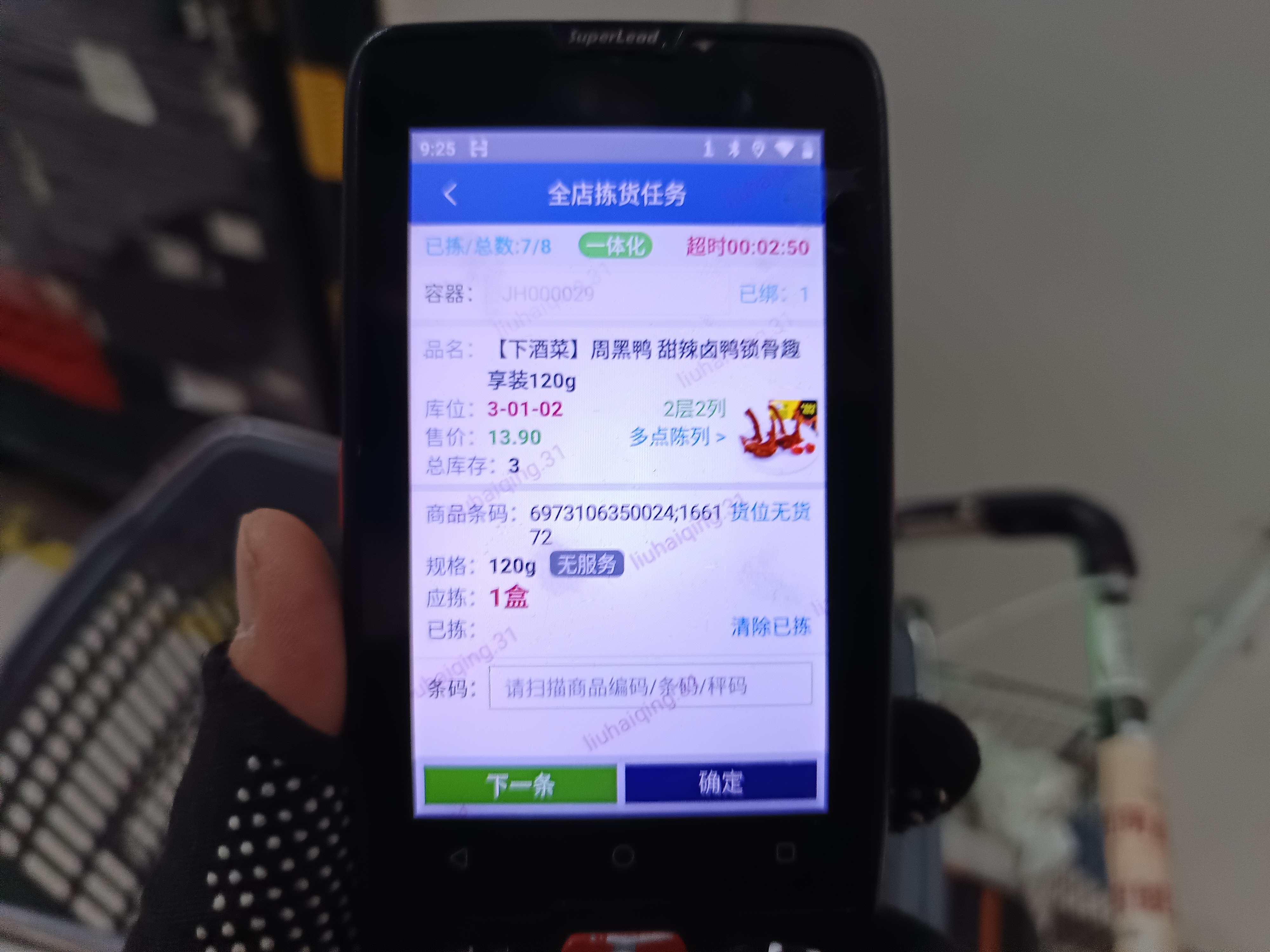 分拣员PDA画面,红色的“超时”令人有点焦虑