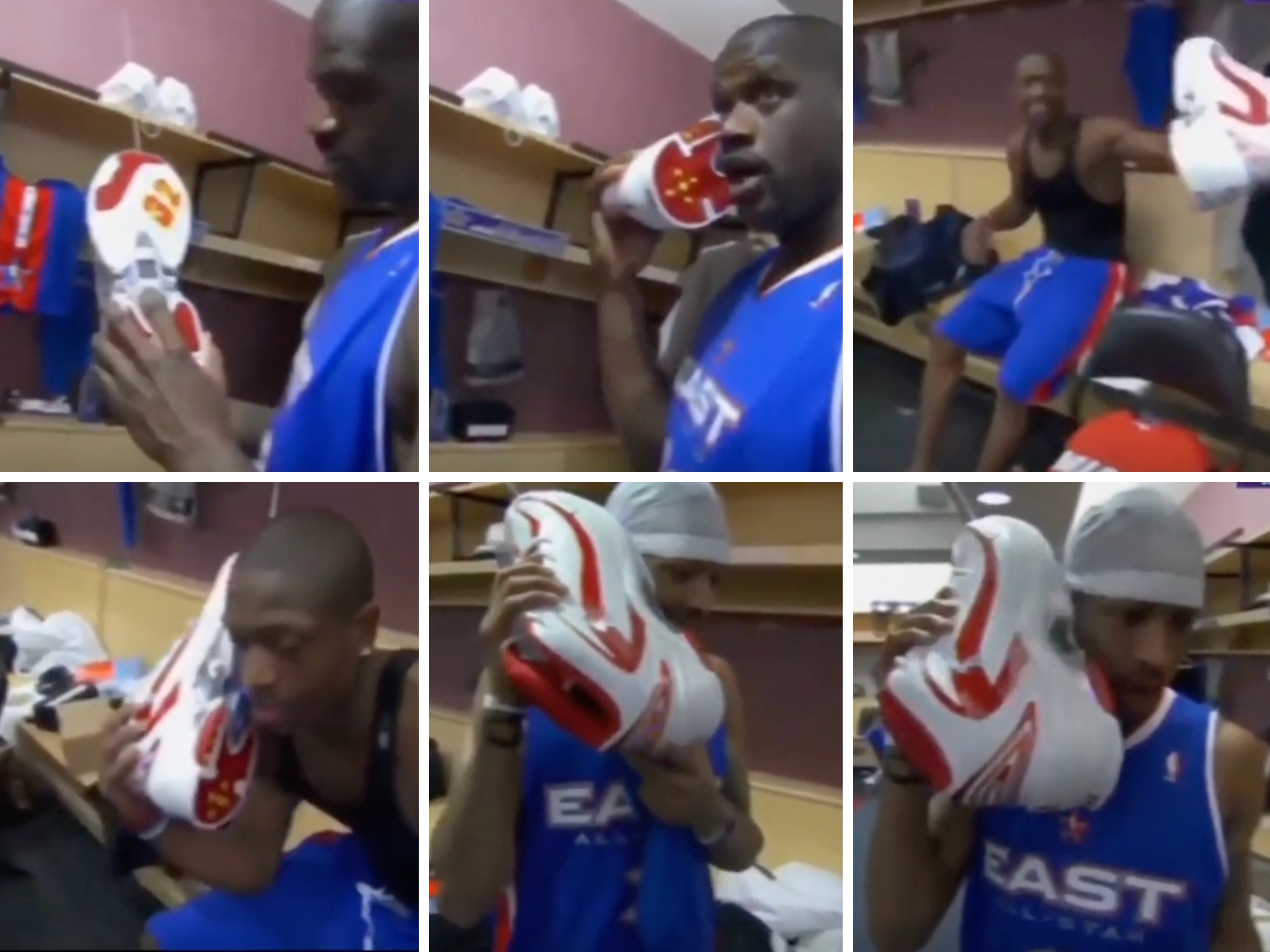 爱耍宝的奥尼尔,在球鞋底塞了个电话~
