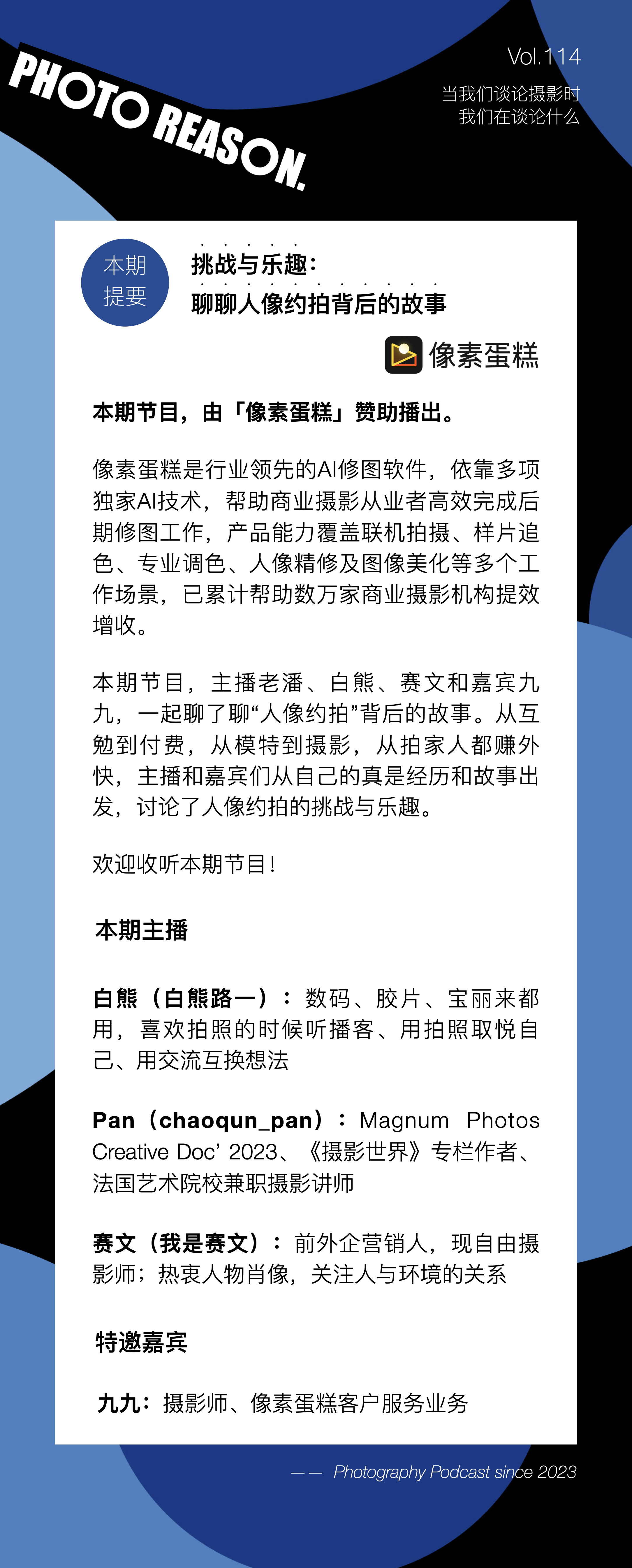 本期节目,由「像素蛋糕」赞助播出,「像素蛋糕」也为「Photo Reason」的听友们带来了以下福利: