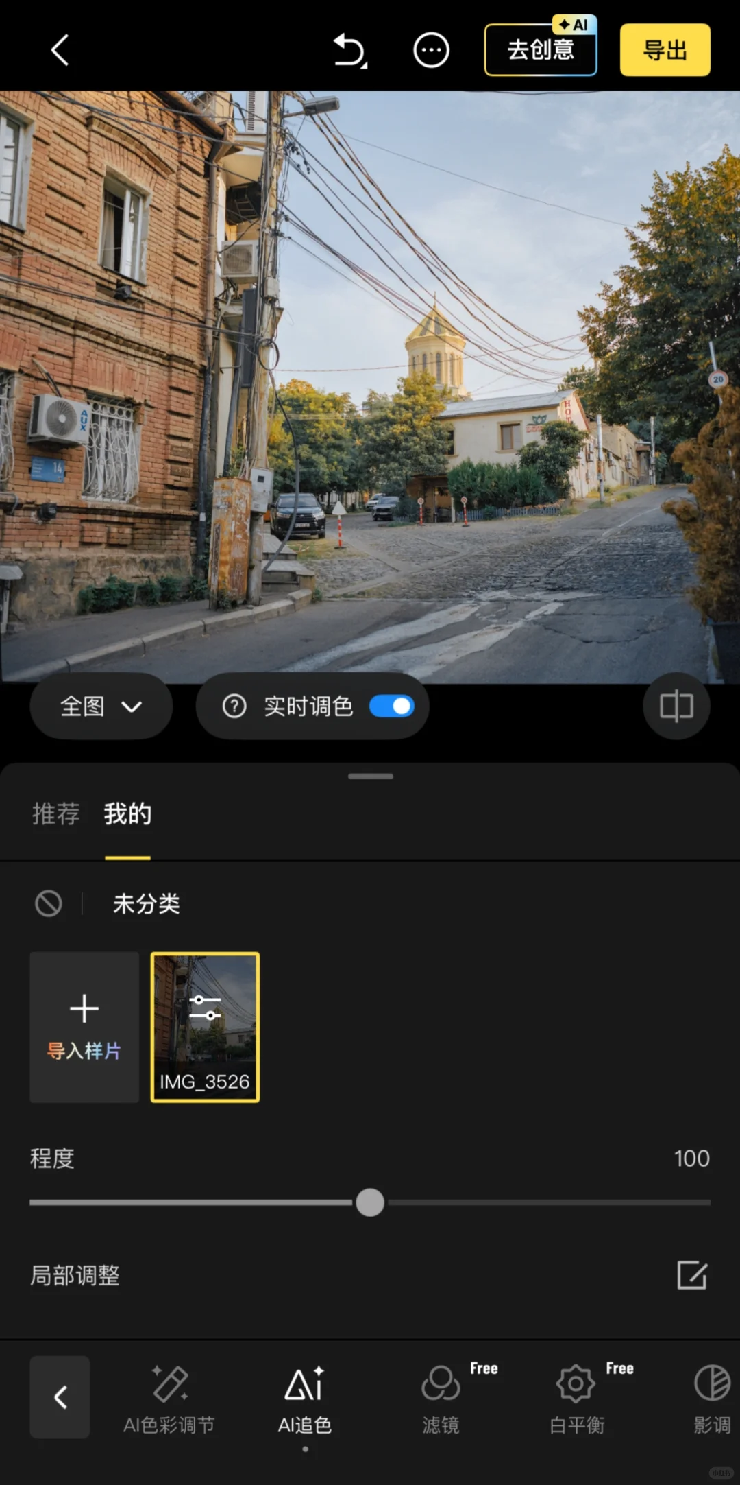 • 「像素蛋糕」AI追色功能演示图
