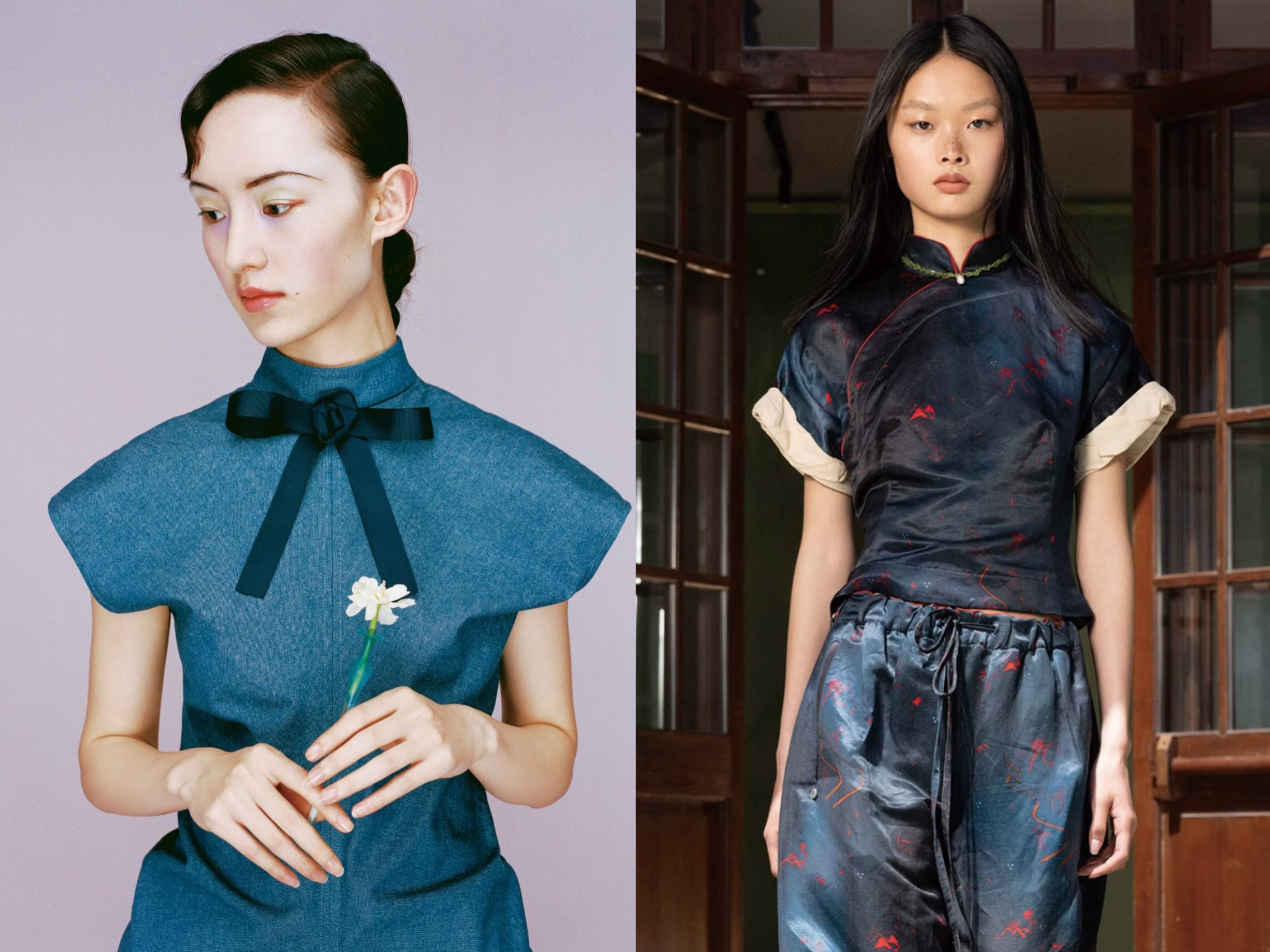 </figure>Ao Yes(左)、SAMUEL GUÌYANG(右)对旗袍的当代演绎