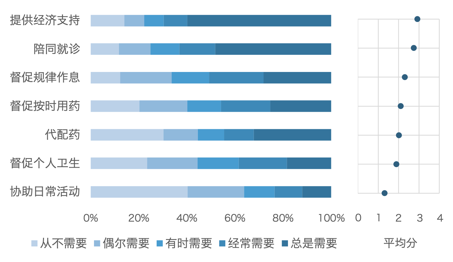 👇不同照顾任务的频率,出自《中国精神障碍人士照顾者现况及需求调查报告》