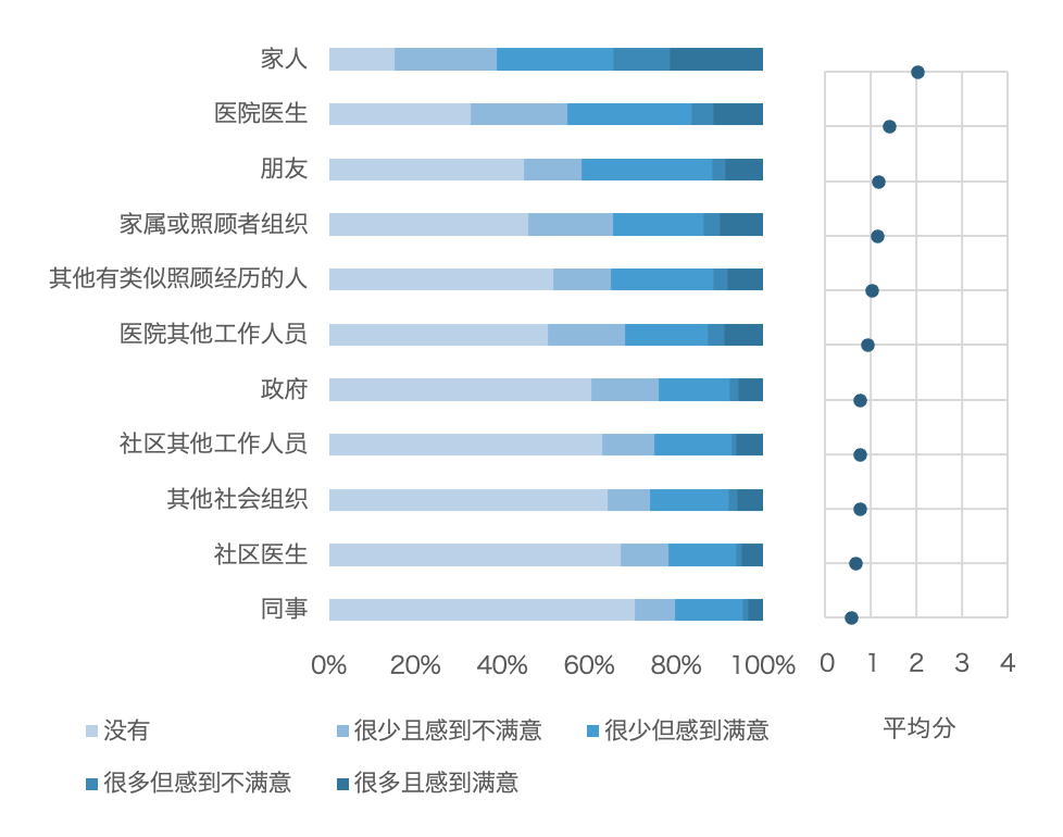 👇不同来源为照顾者提供的社会支持,出自《中国精神障碍人士照顾者现况及需求调查报告》