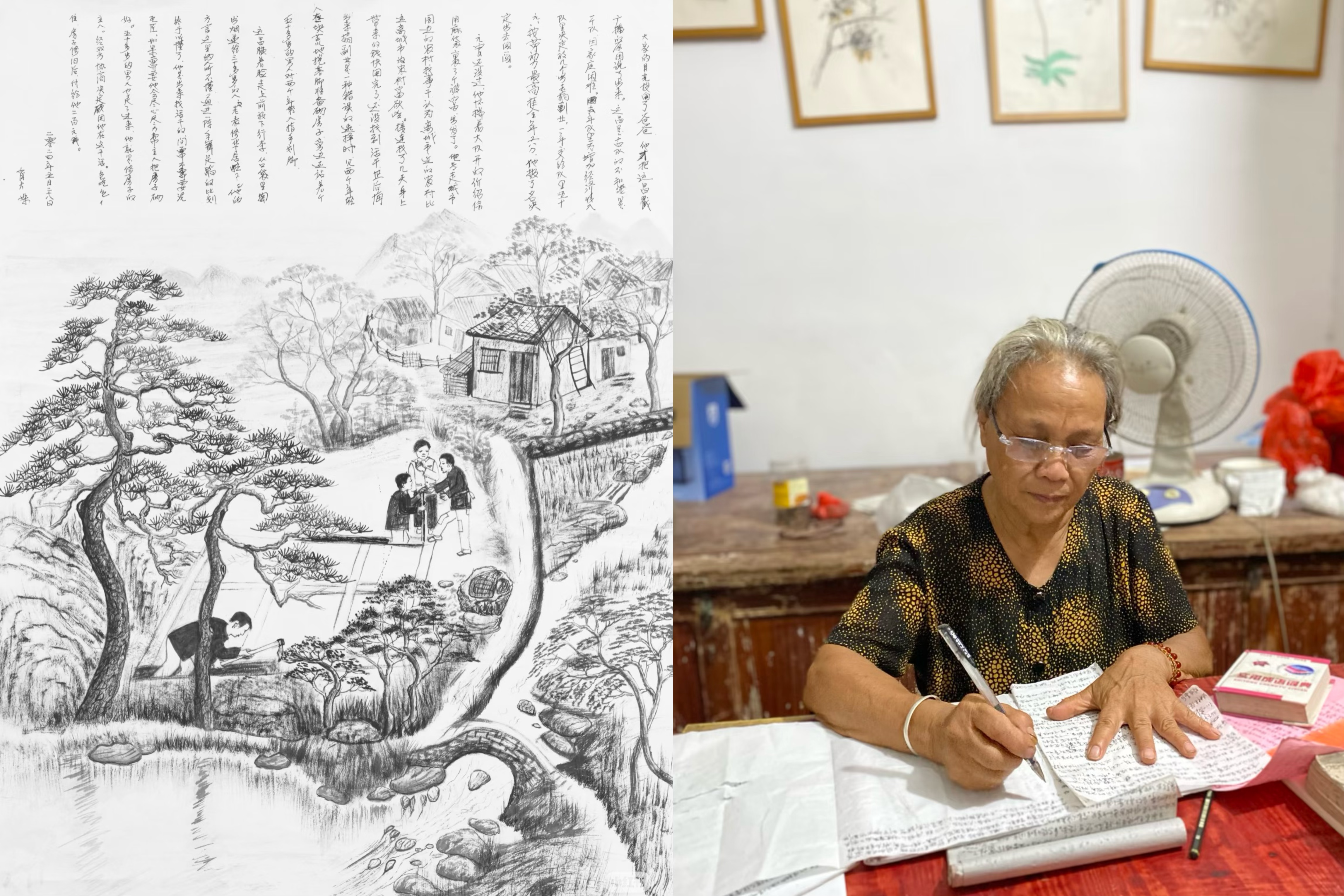 </figure>*肖大妹奶奶每天除了务农、做家务,就是画画和写作