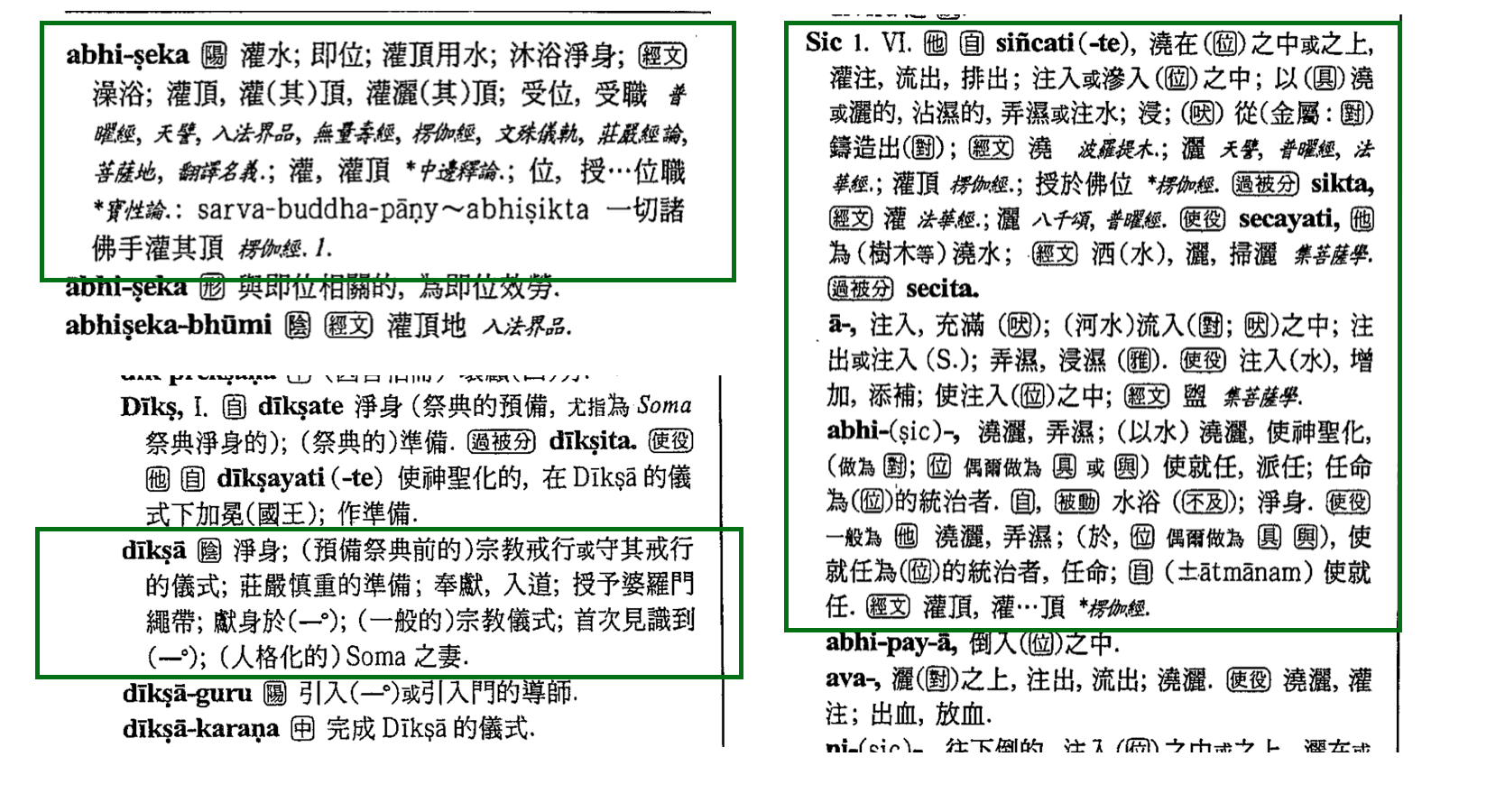 * 相近词汇:【中】启引 【英】initiation 【梵】dīkṣā