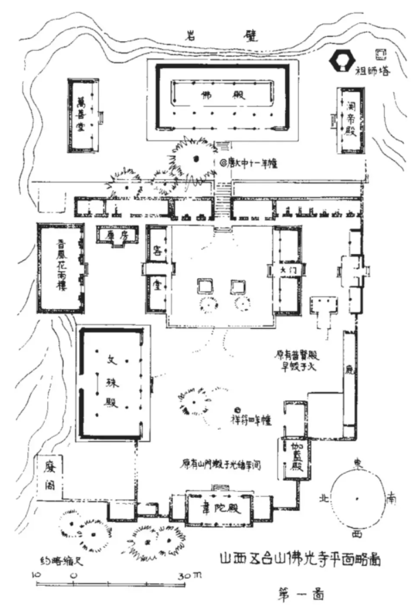 佛光寺平面图(梁思成《记五台山佛光寺建筑》)