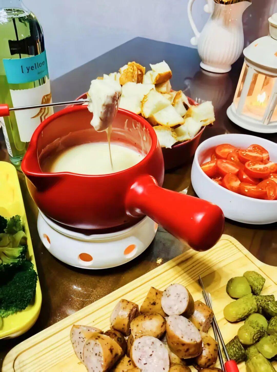 They love starting “raclette season” (瑞士奶酪火锅季) in winter! 这种美食就是把融化的奶酪淋在(pour over)土豆上,再配上火腿(ham)和酸黄瓜(pickle)一起吃。Super rich, super warm!