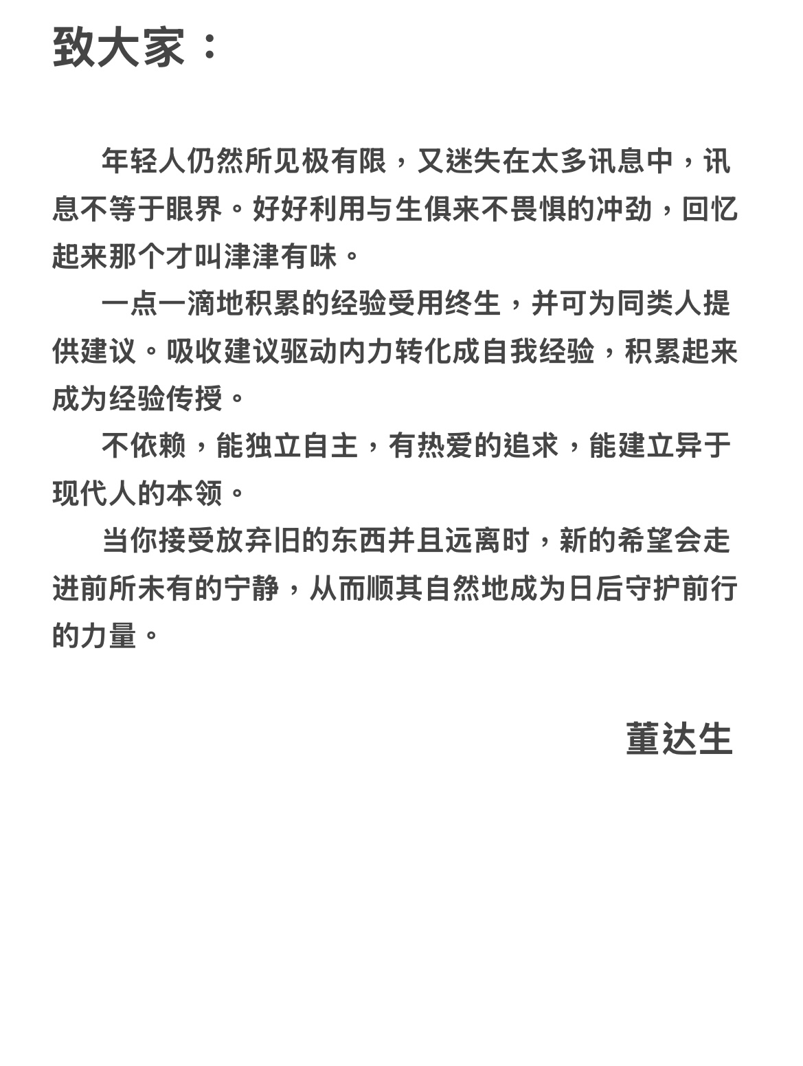 感谢嘉宾与我进行一场如此有趣的对话,最后附上嘉宾想说的一段话给大家,希望能给大家一袭光芒。