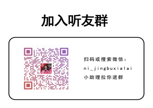 欢迎大家扫码或搜索ni_jingbuxialai 添加小助理,邀请大家进入听友群哦~