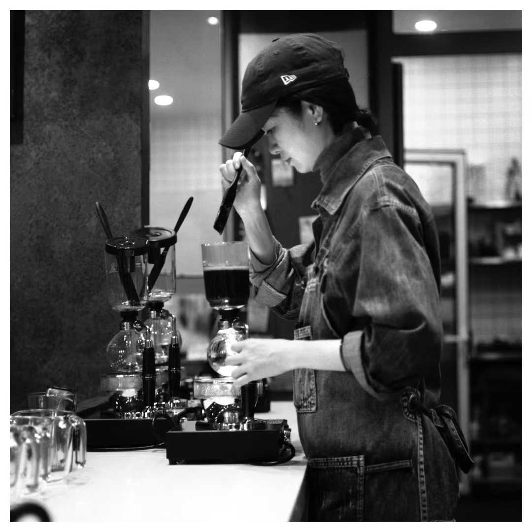 她是典型的“从别的世界绕了一大圈进咖啡”的人:柳州长大,高中来北京学画,考上央美读版画系,后来做过美术老师。因为一次“去城里学咖啡”的念头,阴差阳错在顺义遇到姜老师,用一个月的“打工换学费”,从打扫卫生、刷马桶开始学起,最后留下来,成了遇吉岛的“二当家”。