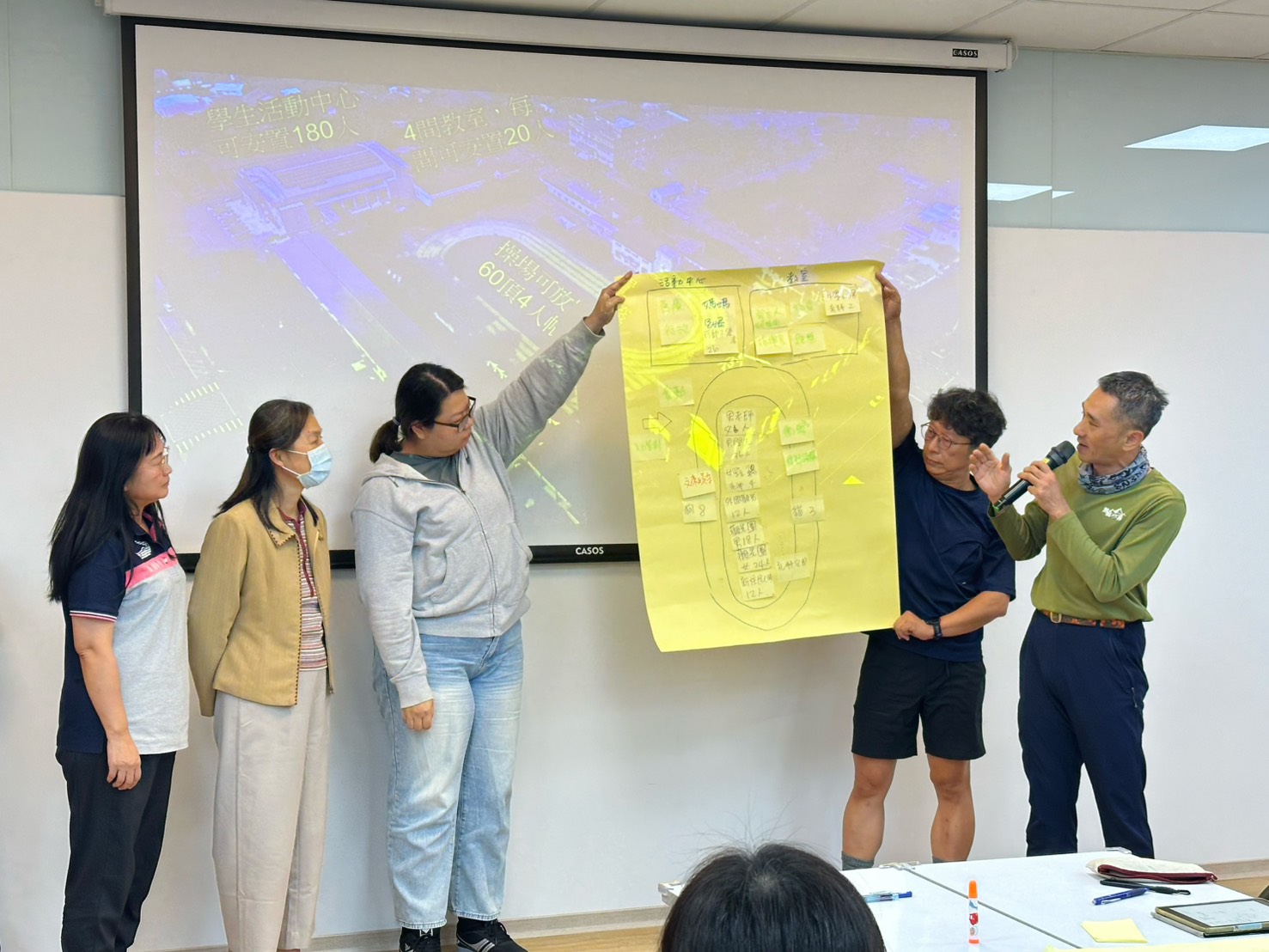 <figcaption>各小組上台,針對其研擬的避難收容場所空間規劃方案進行展示與說明。</figcaption></figure><figure class="image">