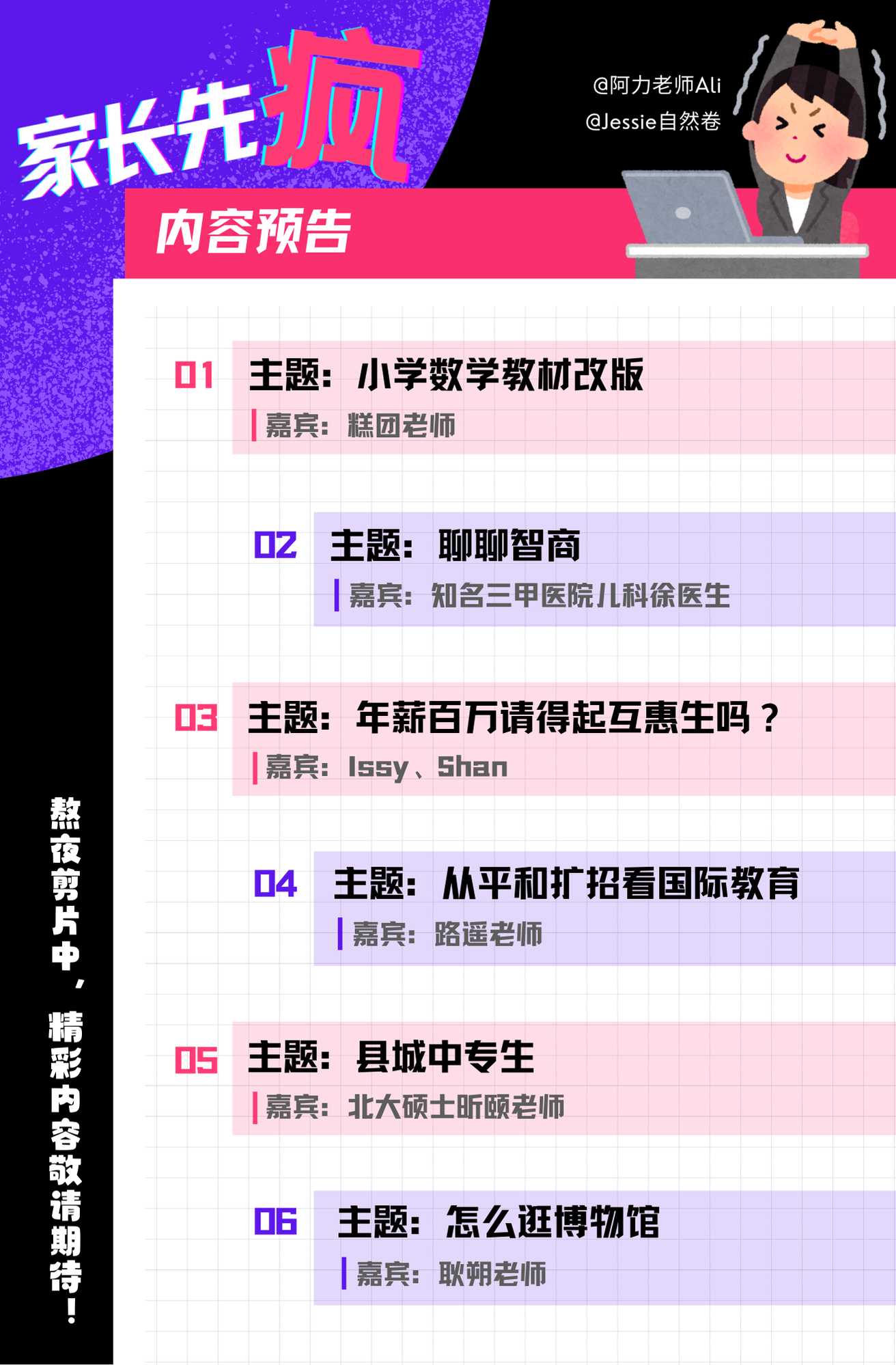 视频号:@阿力老师Ali,@家长先疯,@Jessie自然卷