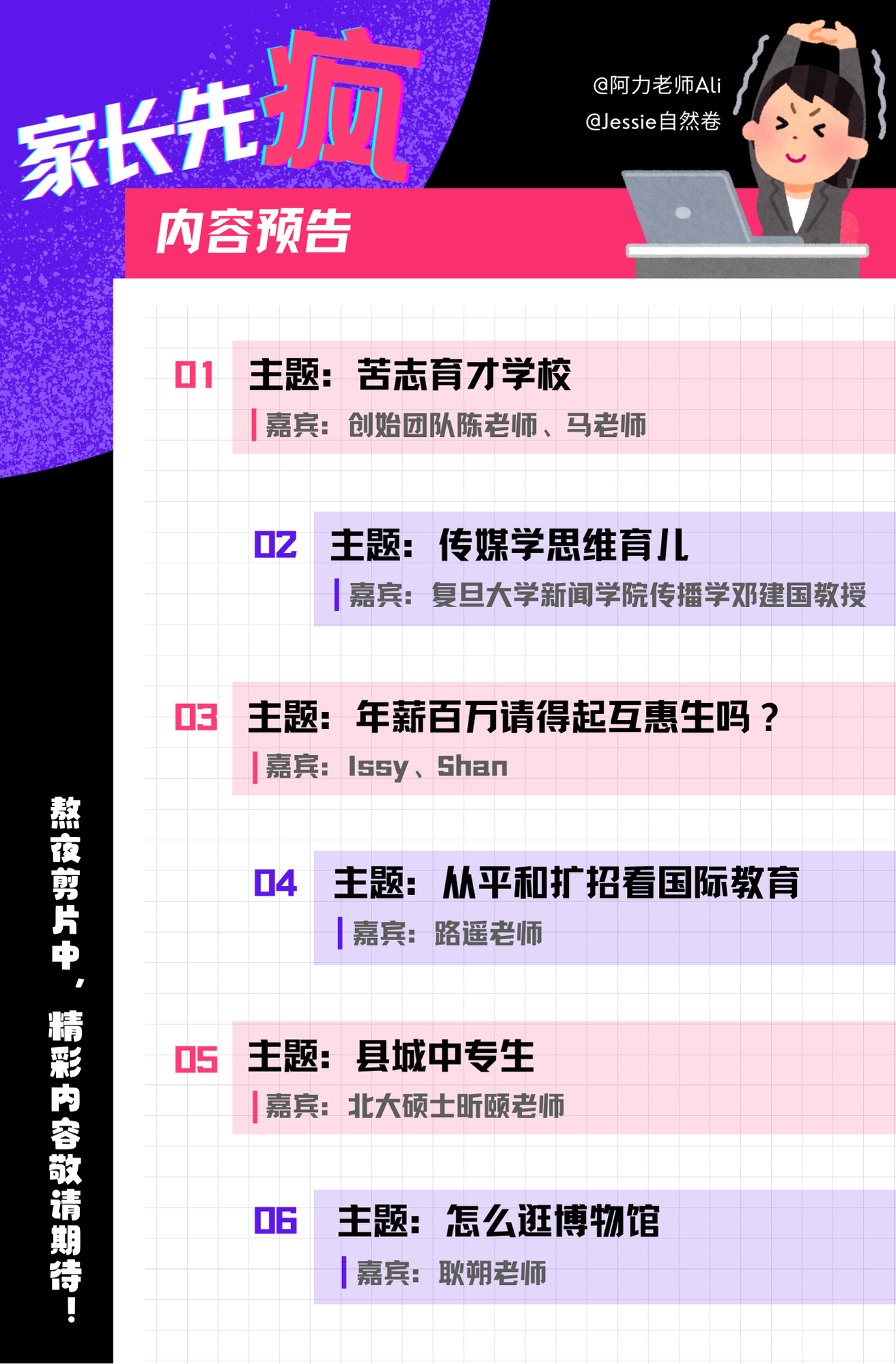 这是一档为孩子发声、替家长发疯的教育对话节目,由 2 位常年浸泡在教育行业的 intj 男女主播一拍即合发起。