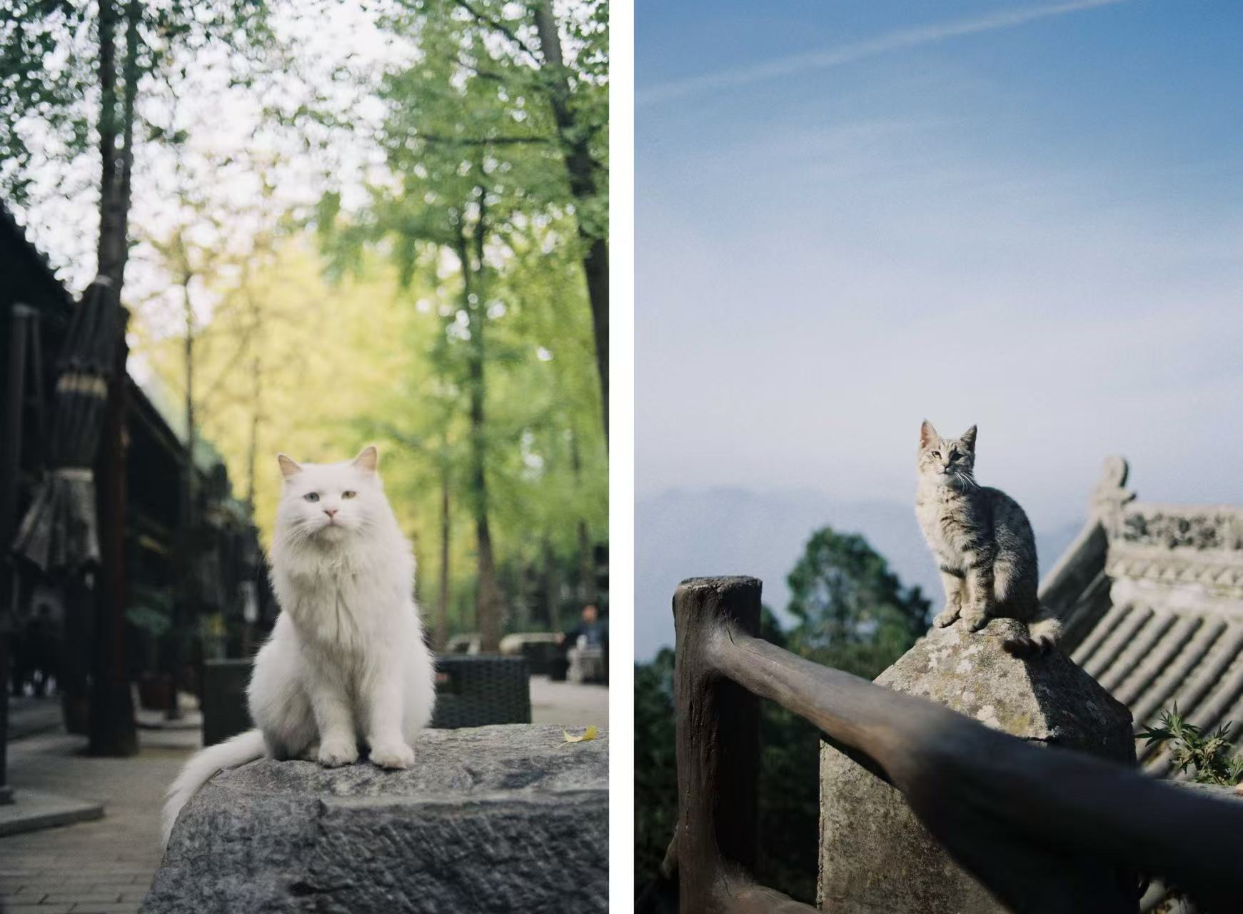 ↑ 大兴善寺的长毛白猫(左)& 南五台的狸花()