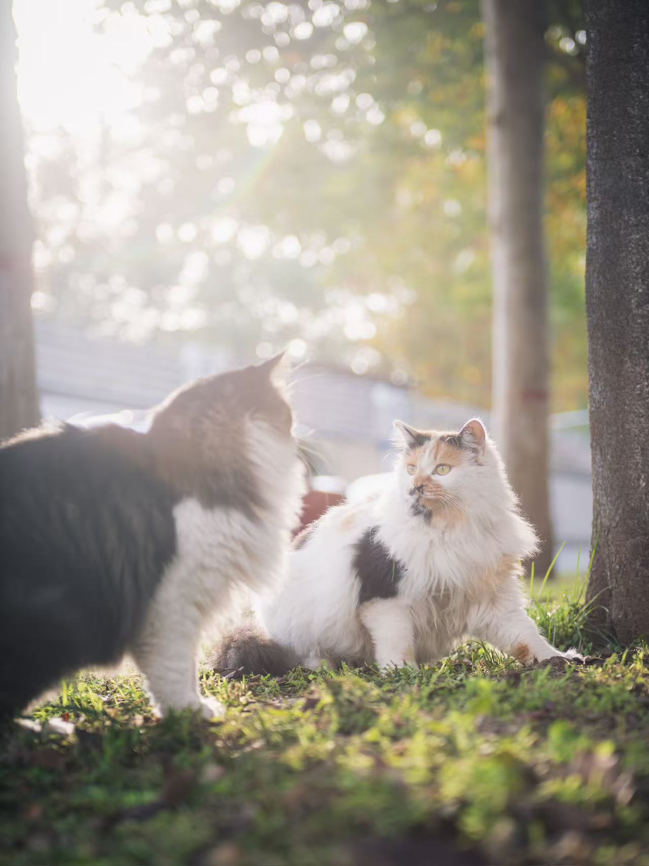↑ 西交大的长毛狸花"黑豆"(左)& 长毛三花"小胡子"(右)
