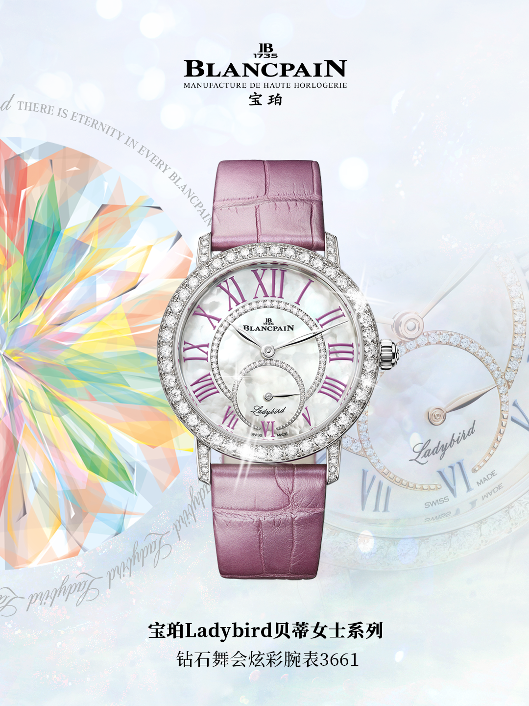宝珀Ladybird贝蒂女士系列,专为女性创作的高级女士机械腕表,彰显“独立、浪漫、智慧与高贵“的女性精神与闪耀时光。