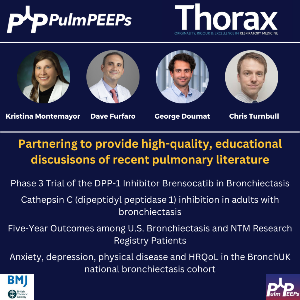 Our mission at Pulm PEEPs is to disseminate and promote pulmonary and critical care education, and we highly value the importance of peer reviewed journals in this endeavor. Each month in BMJ Thorax, a journal club is published looking at high yield and impactful publications in pulmonary medicine. We will be putting out quarterly episodes in association with Thorax to discuss a journal club publication and synthesize four valuable papers.