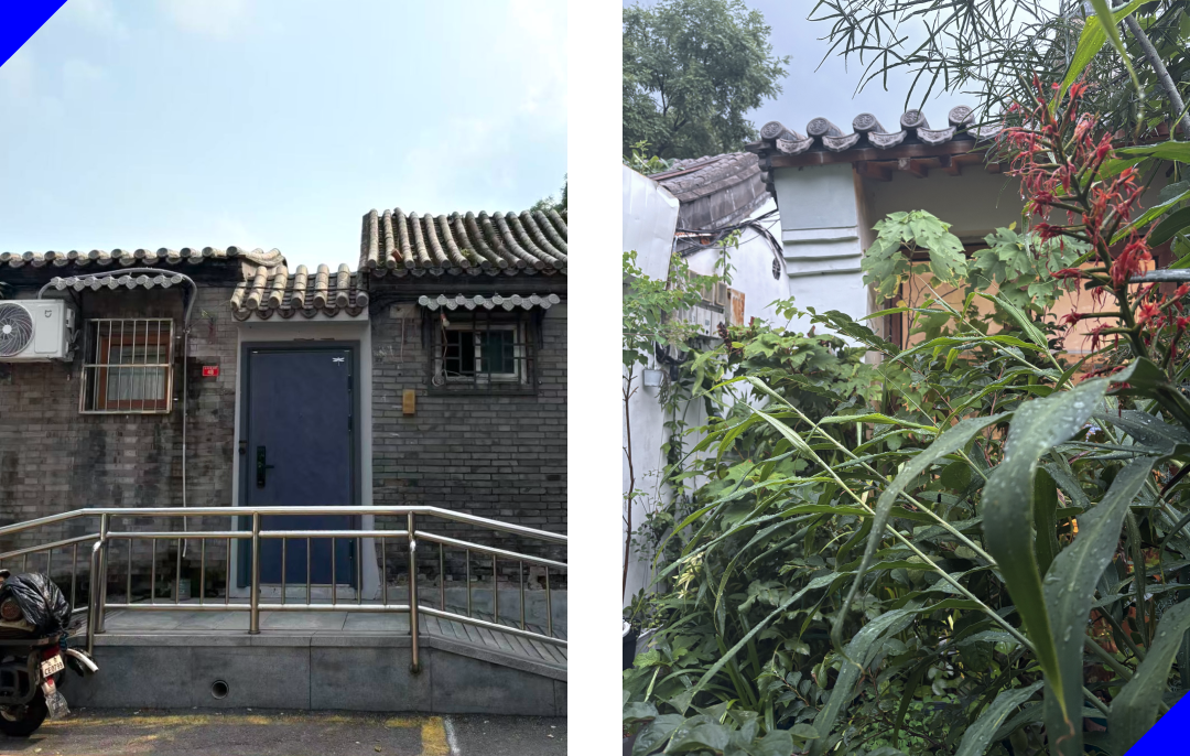 走过鼓楼西剧场、拈花寺和一间间平房,我停在了一扇蓝色铁门前,门的右上角是一只蜻蜓。我来到了青亭建筑的工作室。