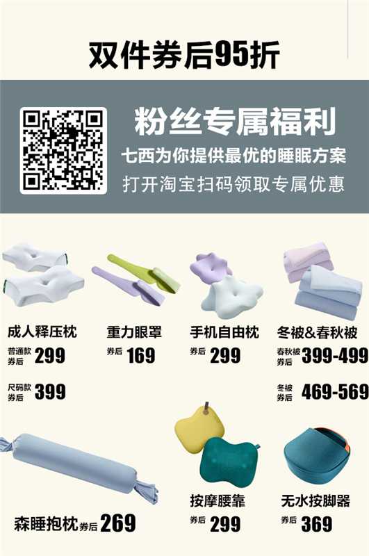 「七西枕头」采用科学分区设计,更适合颈椎生理曲线,不会睡醒肩颈酸痛,落枕,实现翻身自由,可以快速进入深睡眠状态;独特的分码设计可以根据人体的身高体重,头围肩宽选择适合自己的睡眠枕,平时睡不好,肩颈不好的朋友也欢迎了解。