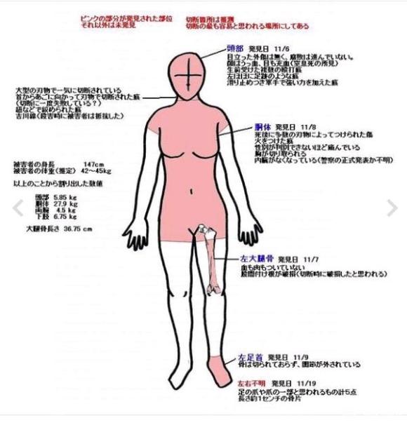 2009 年 11 月 6 日,日本广岛县卧龙山的枫叶林中,村民佐藤在采蘑菇时意外发现一颗女性头颅,警方随后在附近找到烧焦的躯干和残肢,确认这是一起恶性分尸案。法医鉴定死者为 18-22 岁女性,死亡时间约 7-10 天前,死前身受虐待,颈部有勒痕和钝器伤。