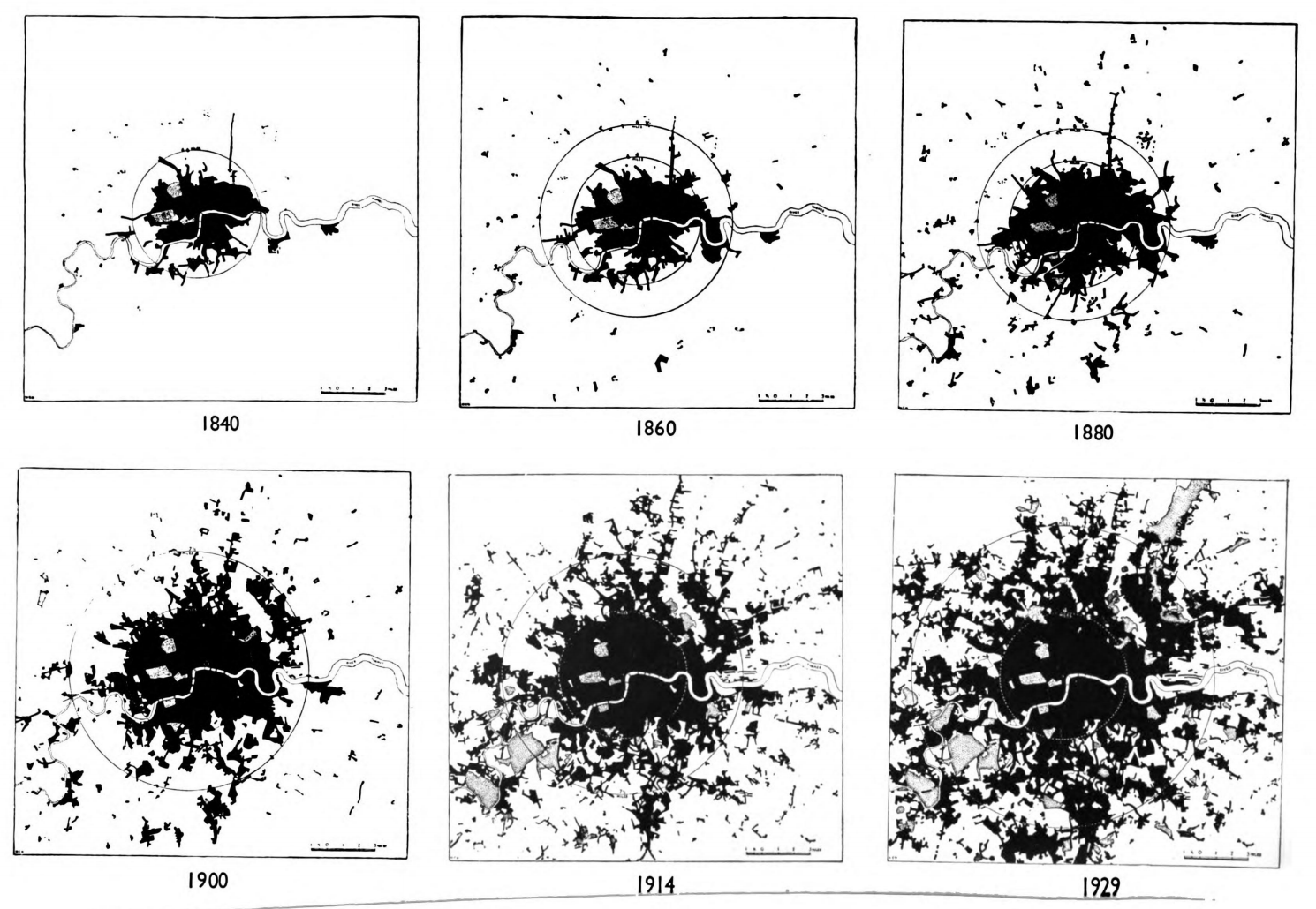 </figure>伦敦城市扩张时序状态(Greater London Plan 1944)