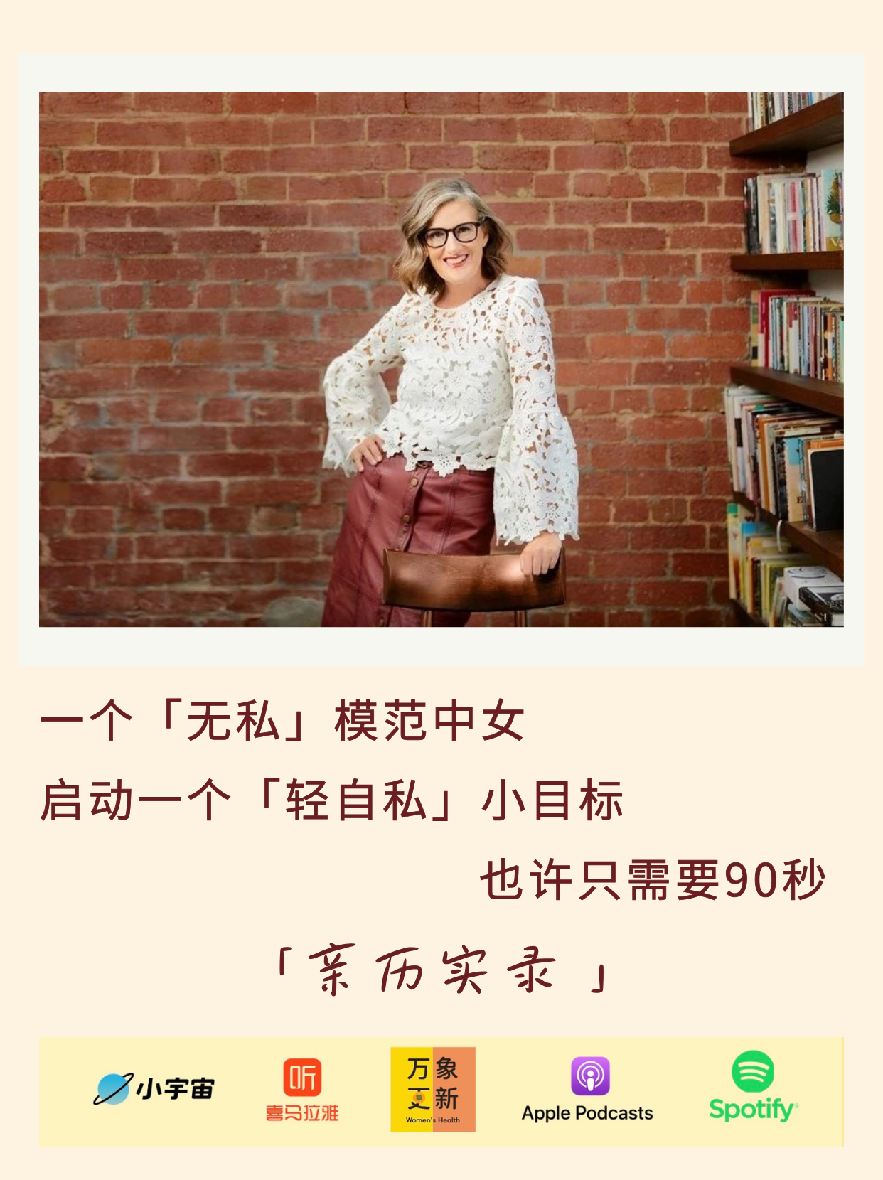 在常人眼里,Kate有很多光鲜亮丽的标签,律师、顶级时间管理教练、专栏作家等等,不为人知的是,在这些标签背后,她经历了婚姻破裂、以自己都说不清的身份照护前夫到其离世、独自抚养青少年孩子,这本书承载了她的坦诚与脆弱,书写了大众媒体标签化的中女觉醒背后的真实坎坷。对谈中,最让我感兴趣的是她口中的向往的unapologetically selfish,“不必道歉的自私”,或者说“轻自私”。为此,Kate总结出了一套人生“动量定律”,用具体行动学会“轻自私”解锁一种新的人生副本,让每一个人可以用90秒制定不止一种选择的人生清单。一起来听听吧。