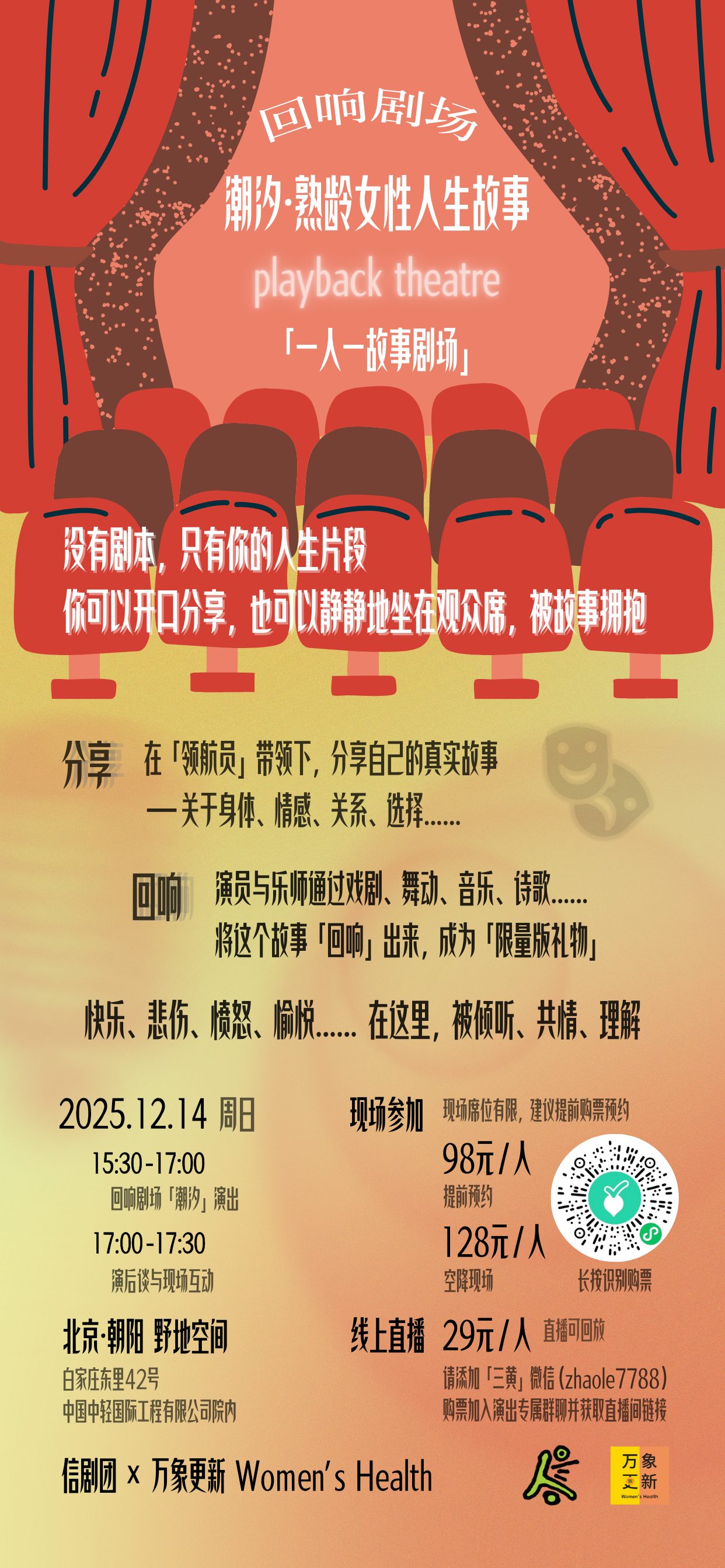 📣号外号外:12 月 14 日,Sijia 会在北京,和山竹姐所在的「信剧团」一起,为大家带来一场以熟龄女性人生故事为主题的回响剧场。这次活动线上线下都可以参与,报名详情请见shownotes 。