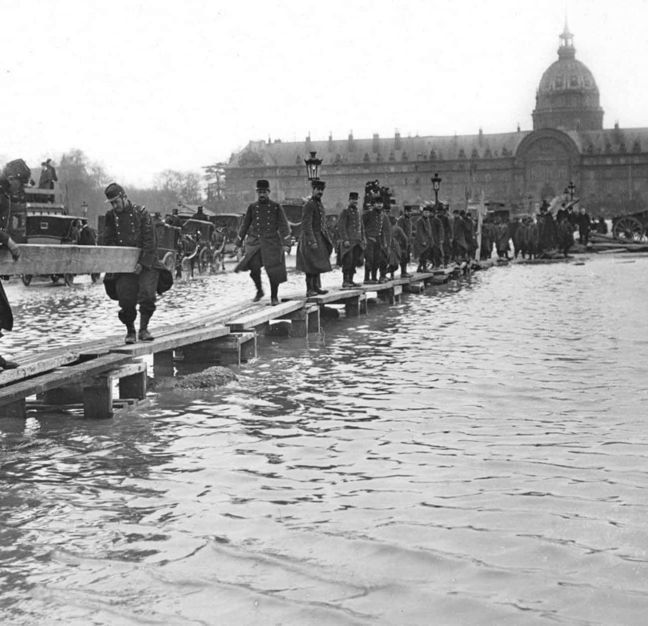 </figure>63 巴黎水灾中的临时木桥03
