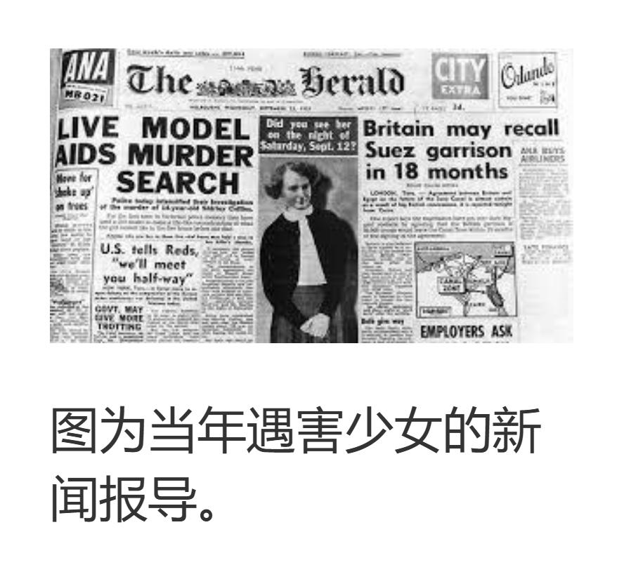 雪莉 1939 年出生,1951 年因亲生母亲改嫁被邻居科林斯夫妇收养(家中共 4 名寄养孩子),性格文静怯懦,被形容为 “像影子一样安静”—— 留齐肩棕发,说话声小,上课坐最后一排,下课多看书少打闹。1953 年 6 月起,14 岁的她放学后在公司做售货员,赚钱攒买文具,唯一的社交突破是案发前一个月参加舞蹈课,曾偷偷练习舞步,对 23 岁同事罗恩邀请的 “成人礼晚会” 充满期待,还特意用三个月零花钱买了浅蓝色连衣裙。