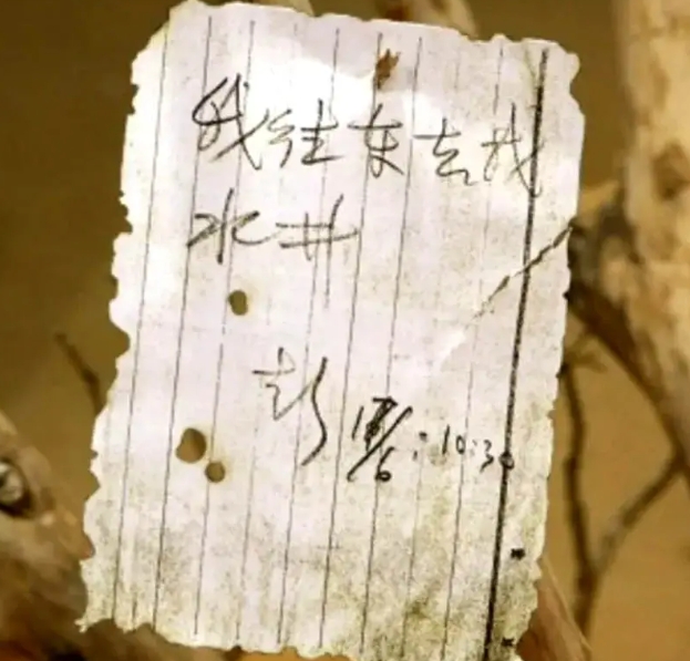 6 月 17 日上午 10 点 30 分,队员发现彭加木不在帐篷,起初以为在附近活动;11 点半,司机在副驾地图下发现纸条,内容为 “我往东去找水井。彭。6 月 17 日 10:30 ”—— 日期 “16 日” 被涂改为 “17 日”,“水井” 二字反复书写,显露出内心挣扎。