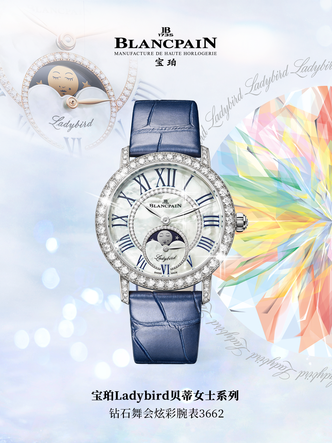 宝珀Ladybird贝蒂女士系列,专为女性创作的高级女士机械腕表,彰显“独立、浪漫、智慧与高贵“的女性精神与闪耀时光。