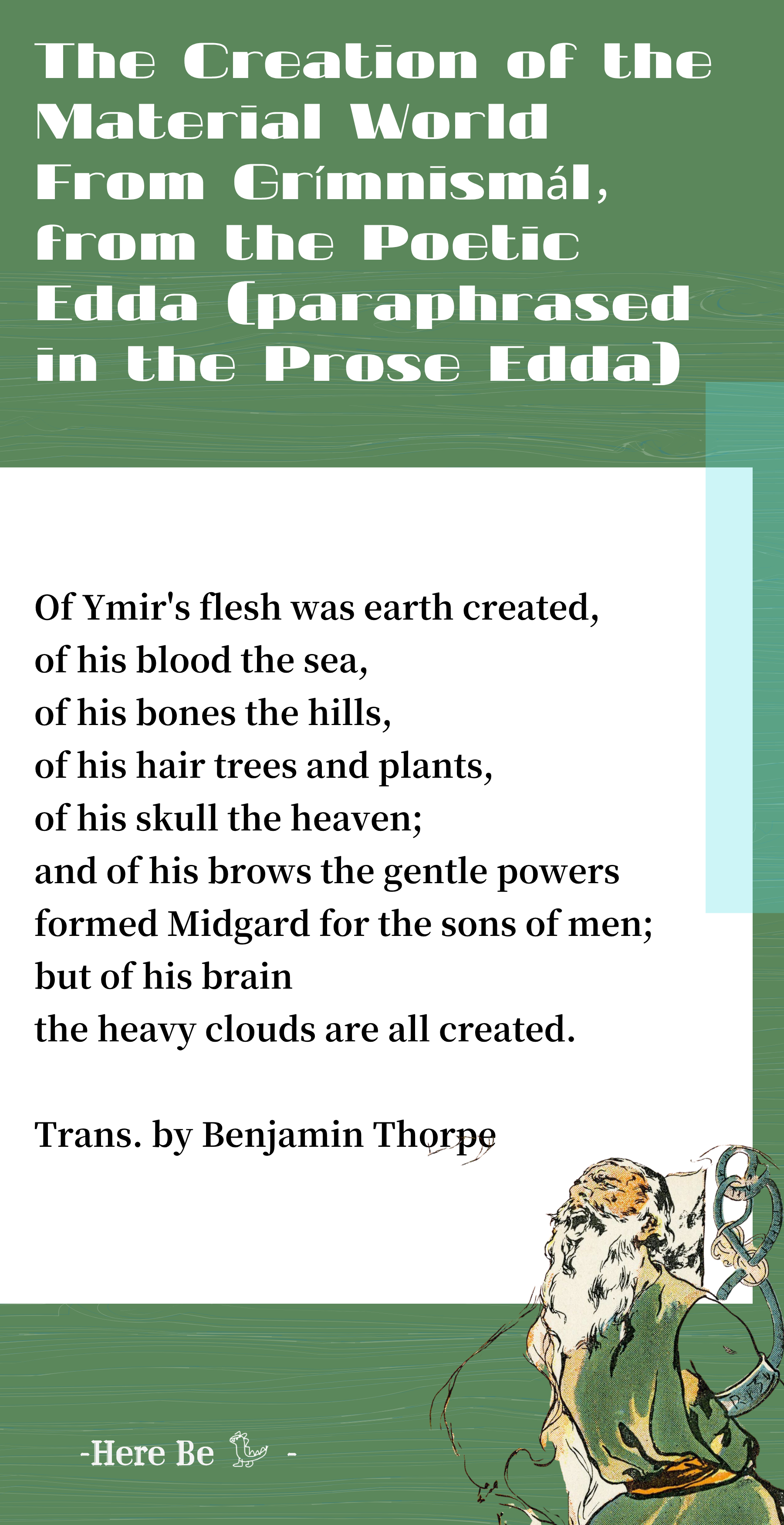 本集中,我们将正式进入冰岛神话的创世叙事, 进入尼弗海姆(Nifheim)和穆斯贝海姆(Muspellheim)中间的金浓加深渊(Ginnungagap),一起来细读《诗体埃达》(Poetic Edda)中《格里姆之歌》(Grimsmal),以及《散文埃达》(Prose Edda)第一章《欺骗格鲁菲》(Gylfaginning 中霜巨人和始祖母牛Audhumla的故事。